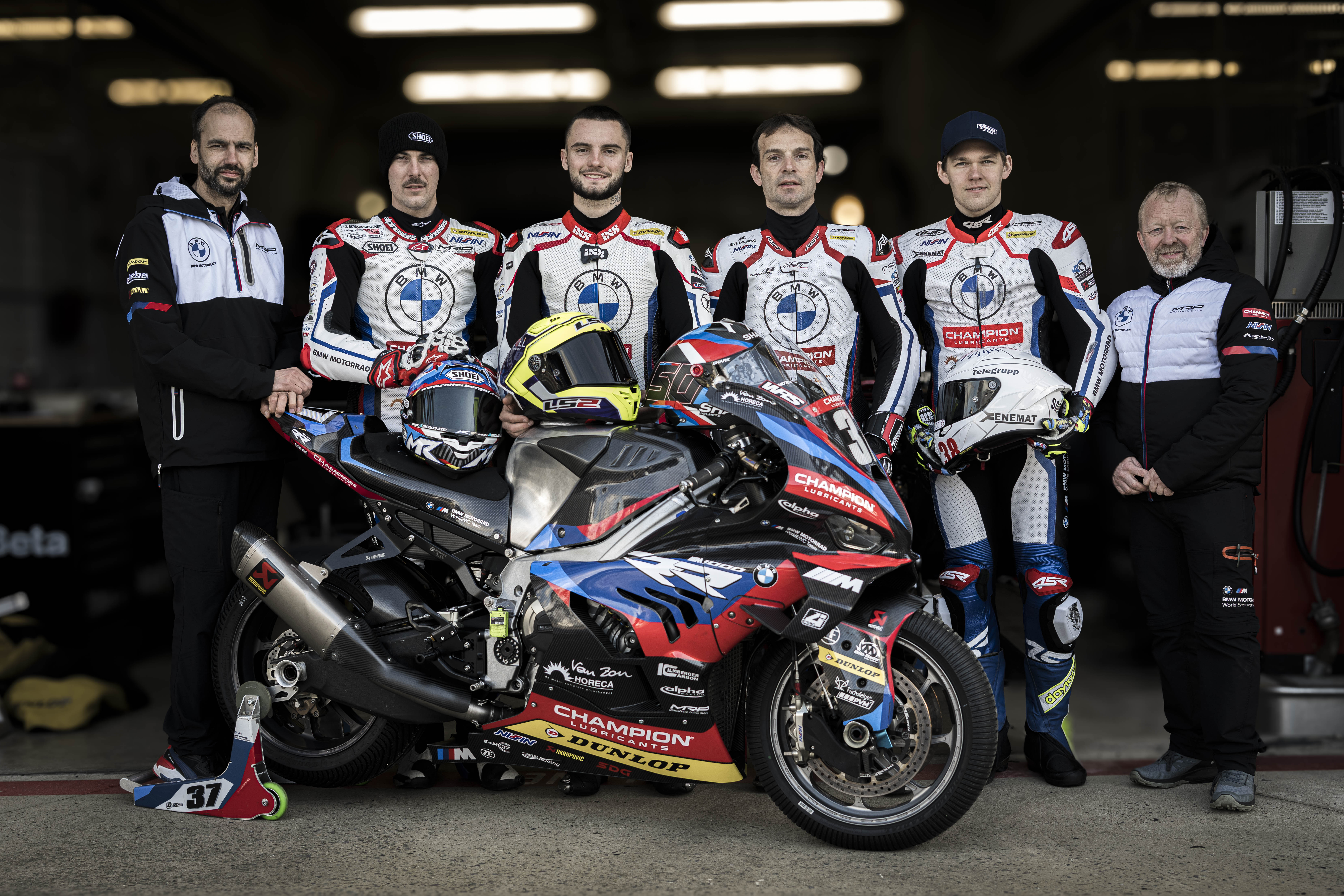 Le Mans (FRA), April 2024. BMW Motorrad Motorsport, FIM Endurance World Championship, FIM EWC. #37 BMW M 1000 RR, BMW Motorrad World Endurance Team, Markus Reiterberger (GER), Ilya Mikhalchik (UKR), Sylvain Guintoli (FRA), Hannes Soomer (EST), Steven Casaer (BEL), Technical Director, Team Manager Werner Daemen (BEL).