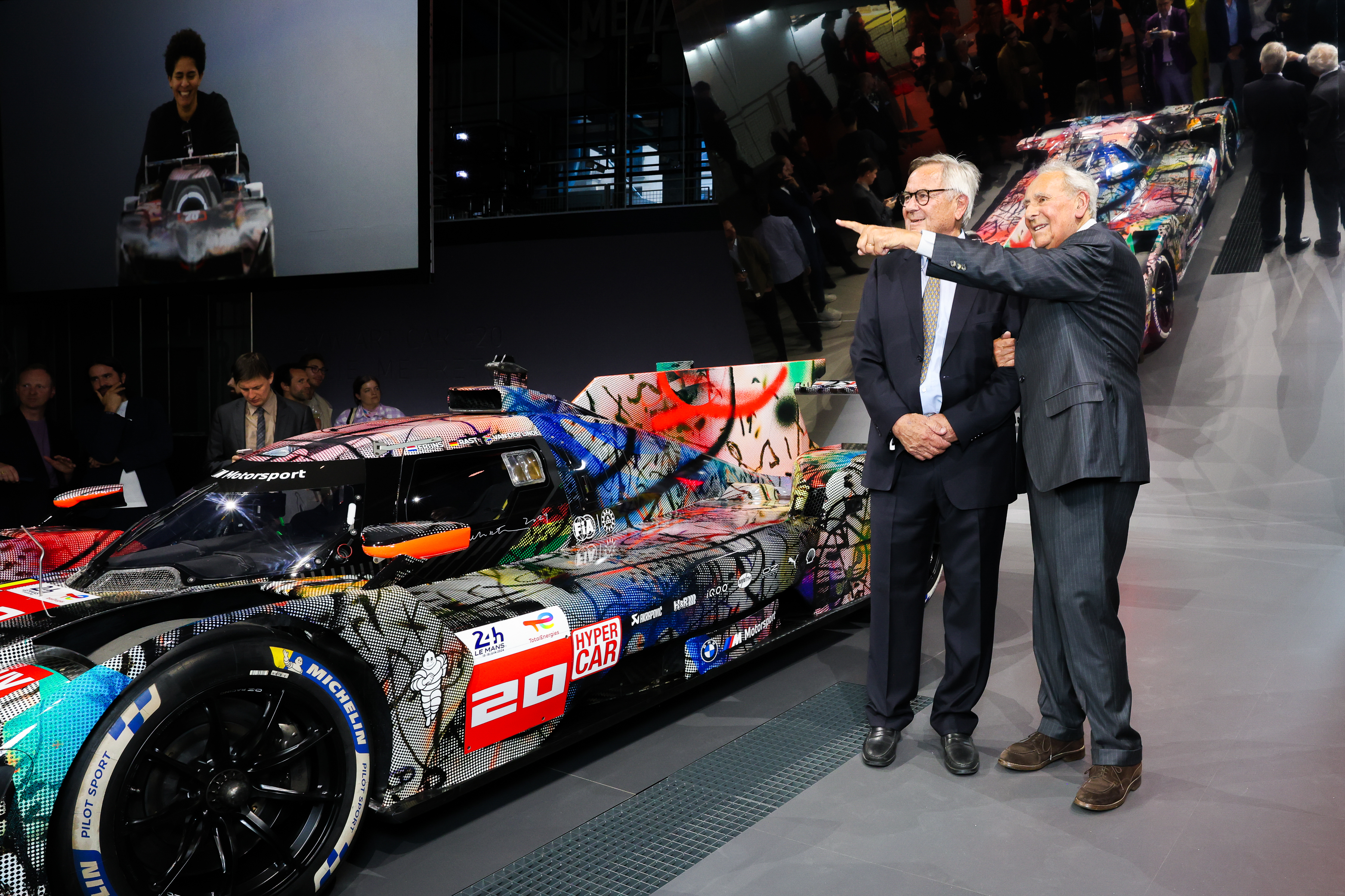 World premiere of the BMW Art Car #20 by Julie Mehretu, Centre Pompidou, Paris, May 21, 2024. Initiators of the BMW Art Car Collection Jochen Neerpasch (former Head of BMW Motorsport GmbH) and Hervé Poulain (former French motorsports racing driver). (05/2024)
