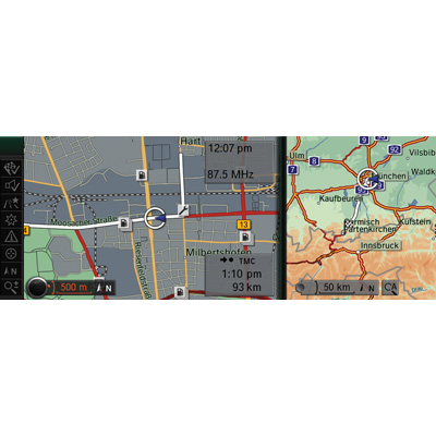 BMW Navigation System Professional, split screen illustration of different maps (07/2007)