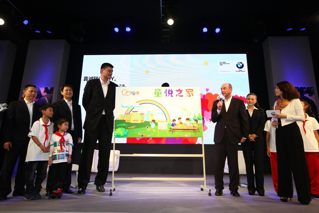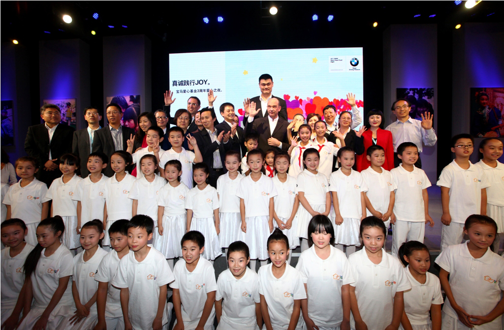 Dr. Stark Christoph, Dr. Daniel Kirchert, Mr. Ming Yao, children and teachers of Lindu primary school in Hechuan District, Chongqing were getting together to celebrate “BMW JOY Home” kick off (10/2011)