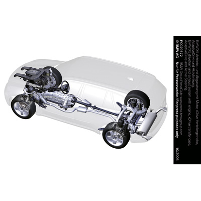 BMW X5 drivetrain and exhaust system with engine, xDrive transfer case, AdaptiveDrive and Active Steering (09/2006)