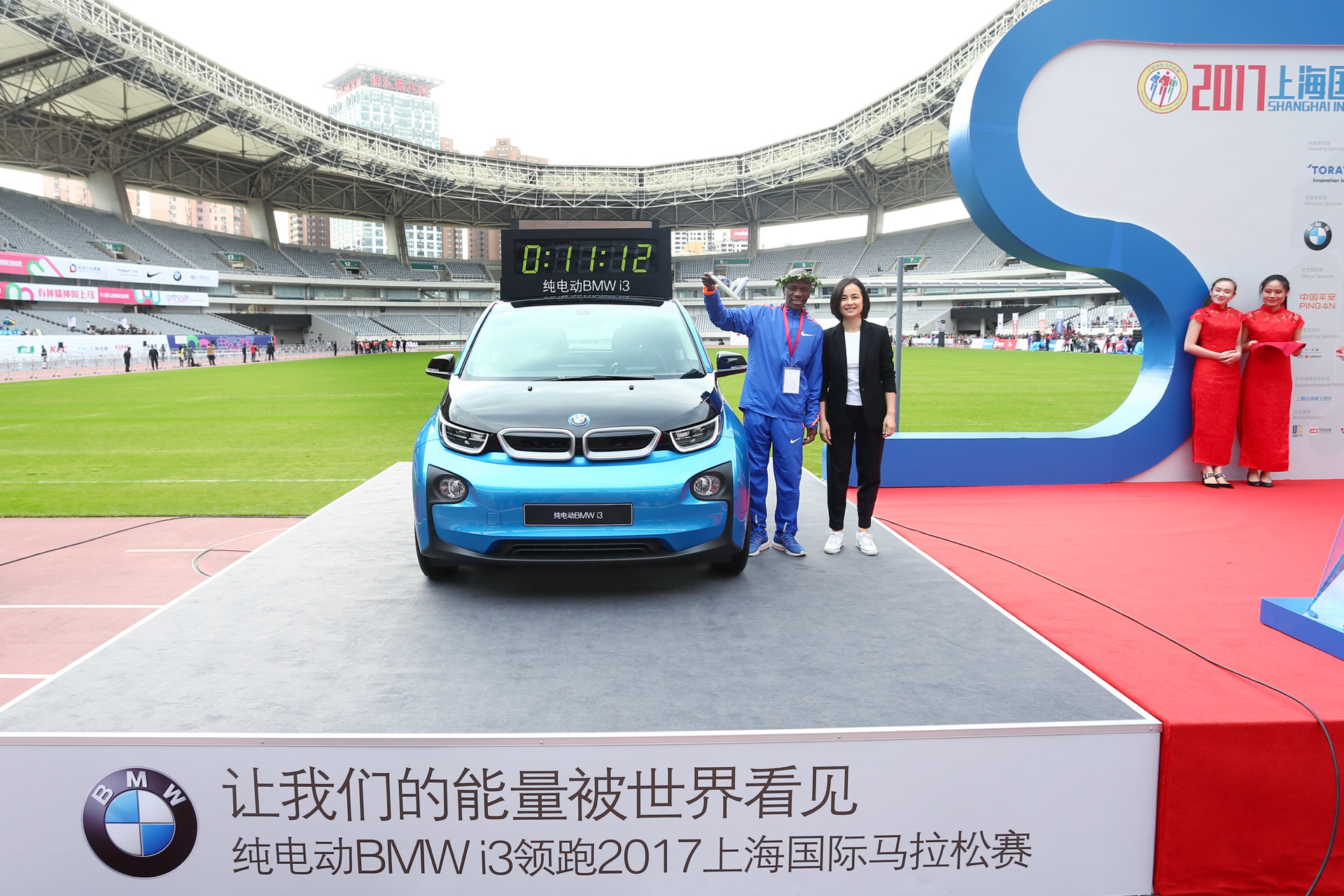 Ms. Alice Mei, Vice President Marketing, BMW China Automotive Trading Ltd. with winner of Men's Marathon (11/2017)