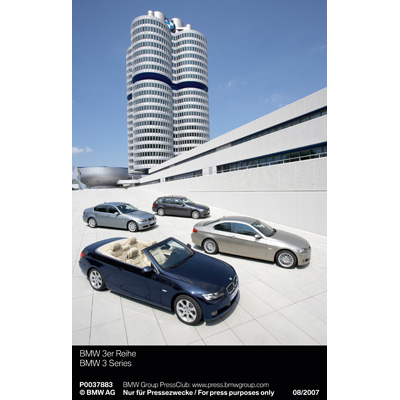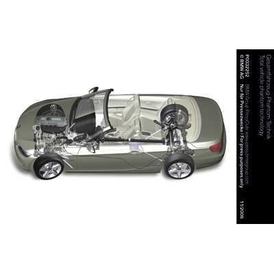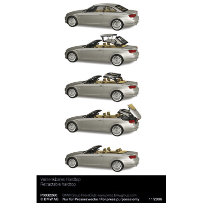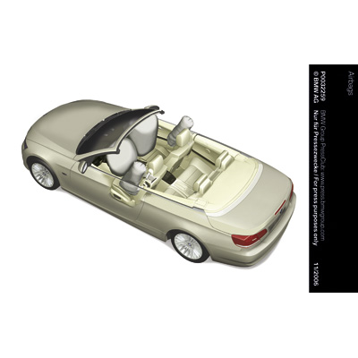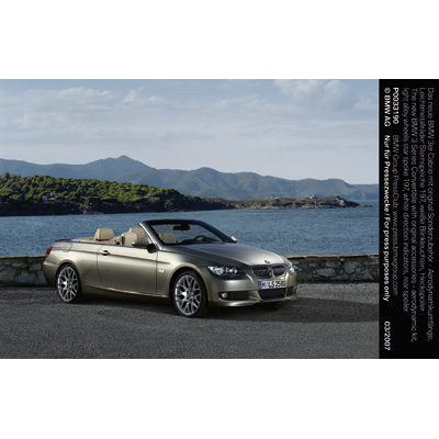 The new BMW 3 Series Convertible with original accessories - aerodynamic kit, light alloy wheels star spoke 199, white direction indicators, rear spoiler, wind deflector (03/2007)