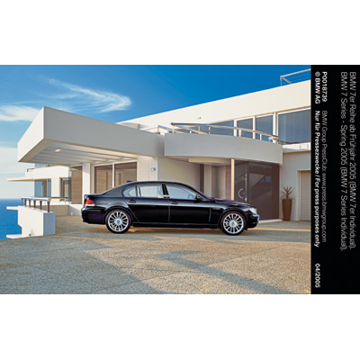BMW 7 Series - Spring 2005 (750i Individual, BMW Individual Leather Merino, Interior trim piano finish black, headliner Alcantara). (04/2005)