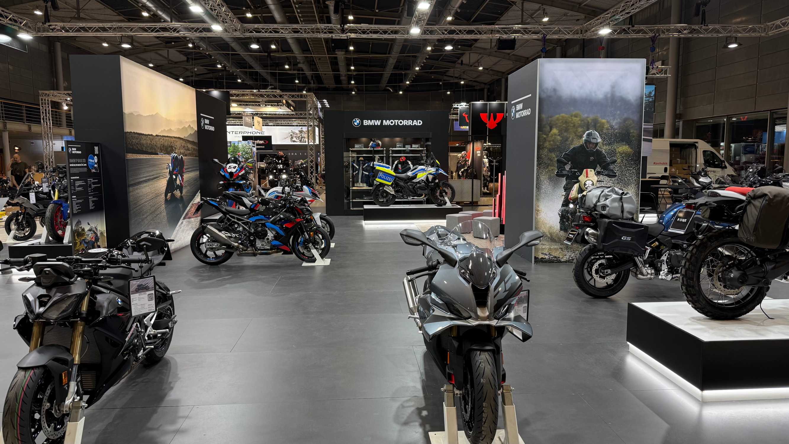 Zajímavým doplňkem jsou také expozice ve spolupráci s BMW Motorrad Autorizovanými dealery, kde jsou prezentovány servisní služby, okruhové ježdění ve spolupráci s agenturou Motoriders nebo oblečení a doplňky BMW Motorrad s možností koupě přímo na místě. Ve vedlejší hale připravili jezdci z Motoškoly Přijďte se projet exhibiční trať, na níž předvádí agilitu motocyklů BMW při různých simulovaných situacích.