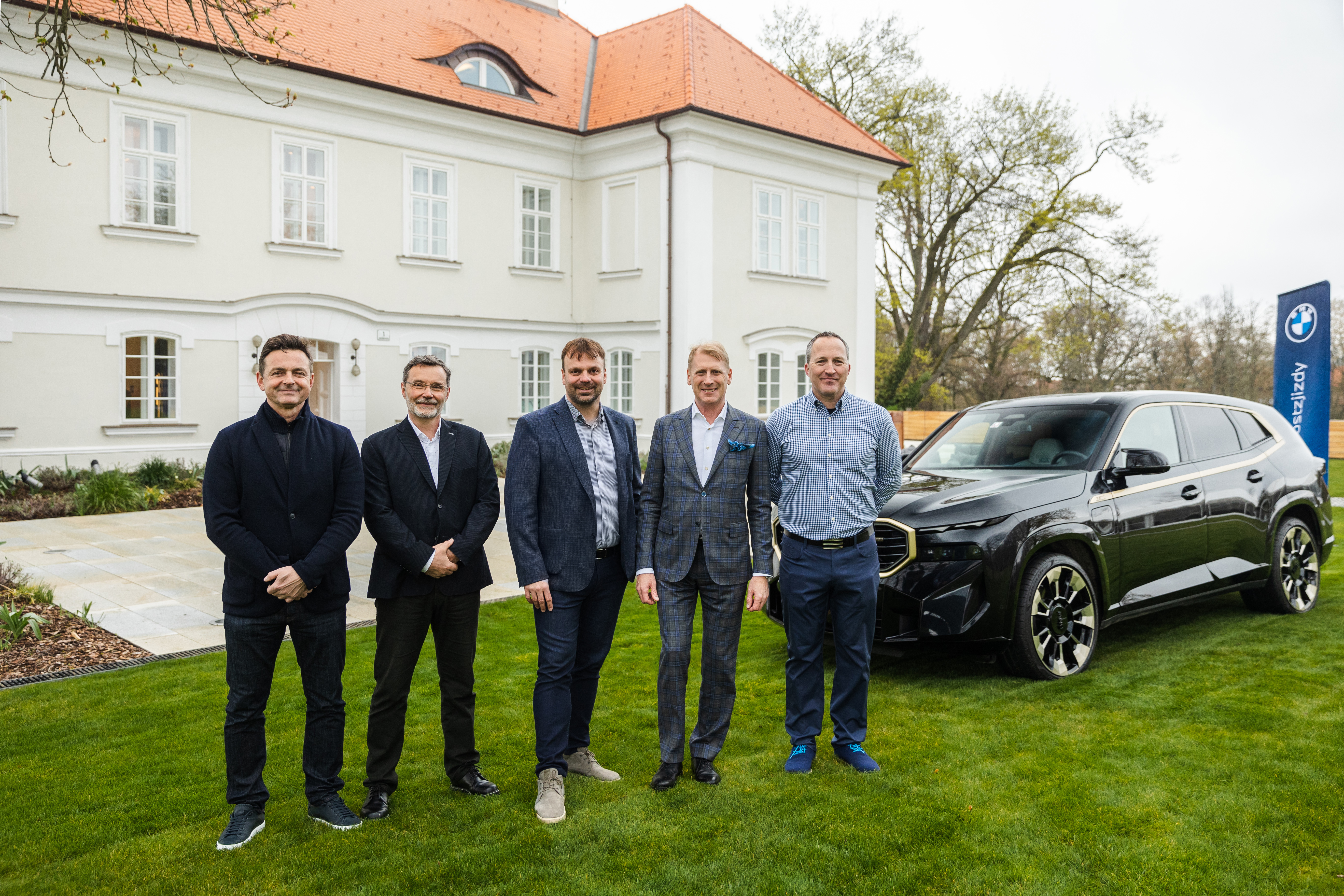 BMW partnerem hřiště PGA National OAKS Czech Republic, zleva: Jakub Dlouhý (Marketing Director, Kaprain), Jan Kolací (Real Estate - Finance, Kaprain), Petr Medvedík (CFO, Member of Board of Directors, Arendon), Maciej Galant (Managing Director, BMW Czech Republic), Paul Dennis (Director of Golf, PGA National Czech Republic) (04/2023)