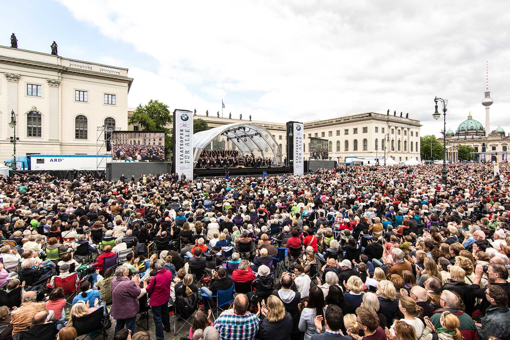 Die Reihe „Staatsoper für alle“ fand in Berlin erstmals im Jahr 2007 statt und ist inzwischen als Höhepunkt im Kulturkalender der Stadt ein Magnet für viele Berliner und Gäste der Stadt. Die Kooperation der Staatsoper Unter den Linden mit BMW ist fester Bestandteil des internationalen Kulturengagements der BMW Group und Teil einer Reihe von Open-Air-Konzerten, die die BMW Group auch in München mit der Bayerischen Staatsoper und in London mit dem London Symphony Orchestra veranstaltet.