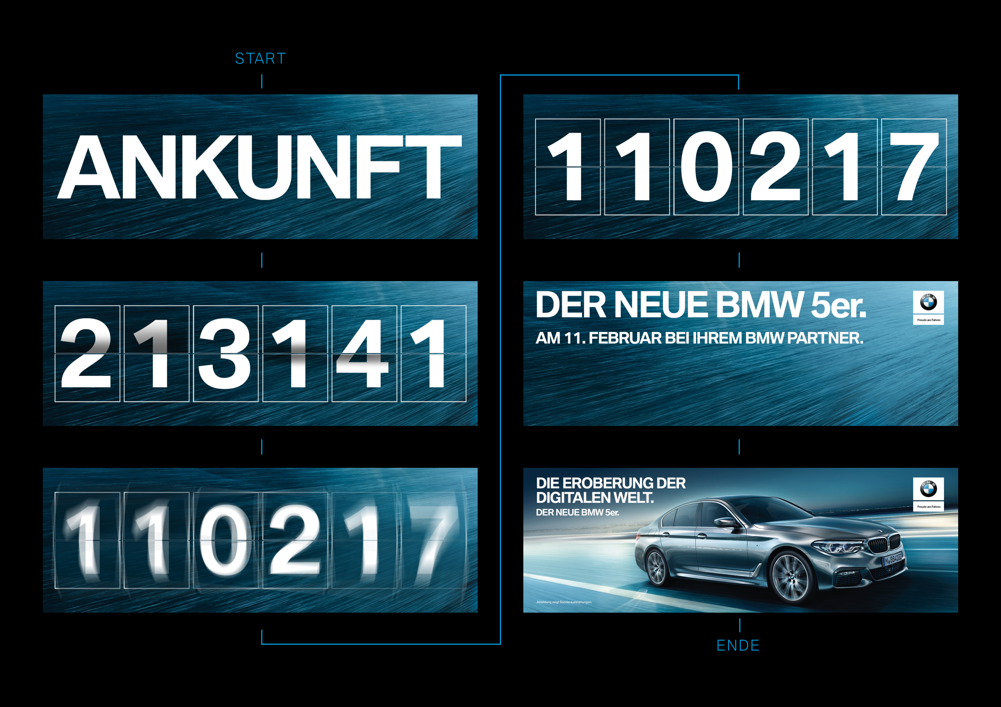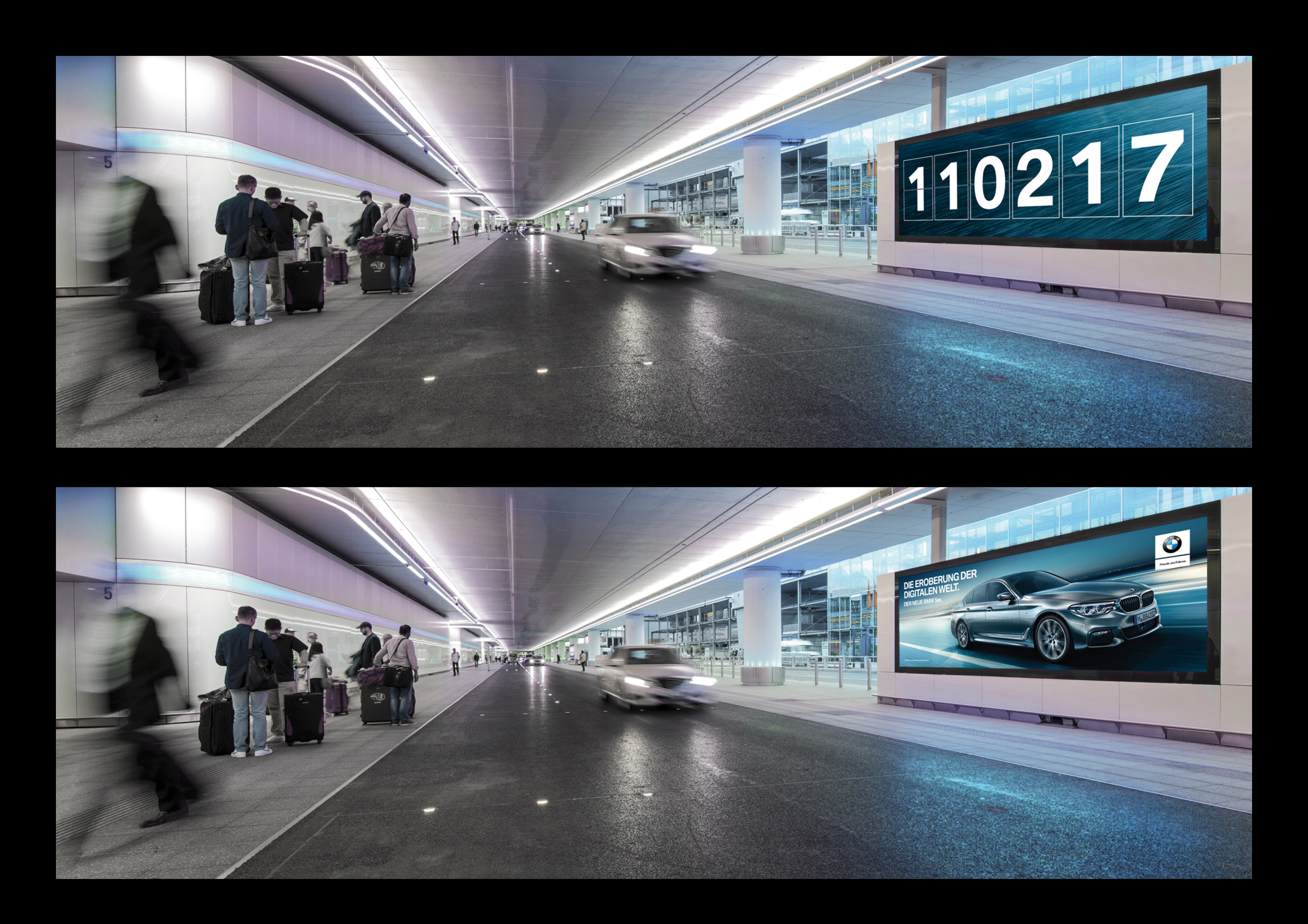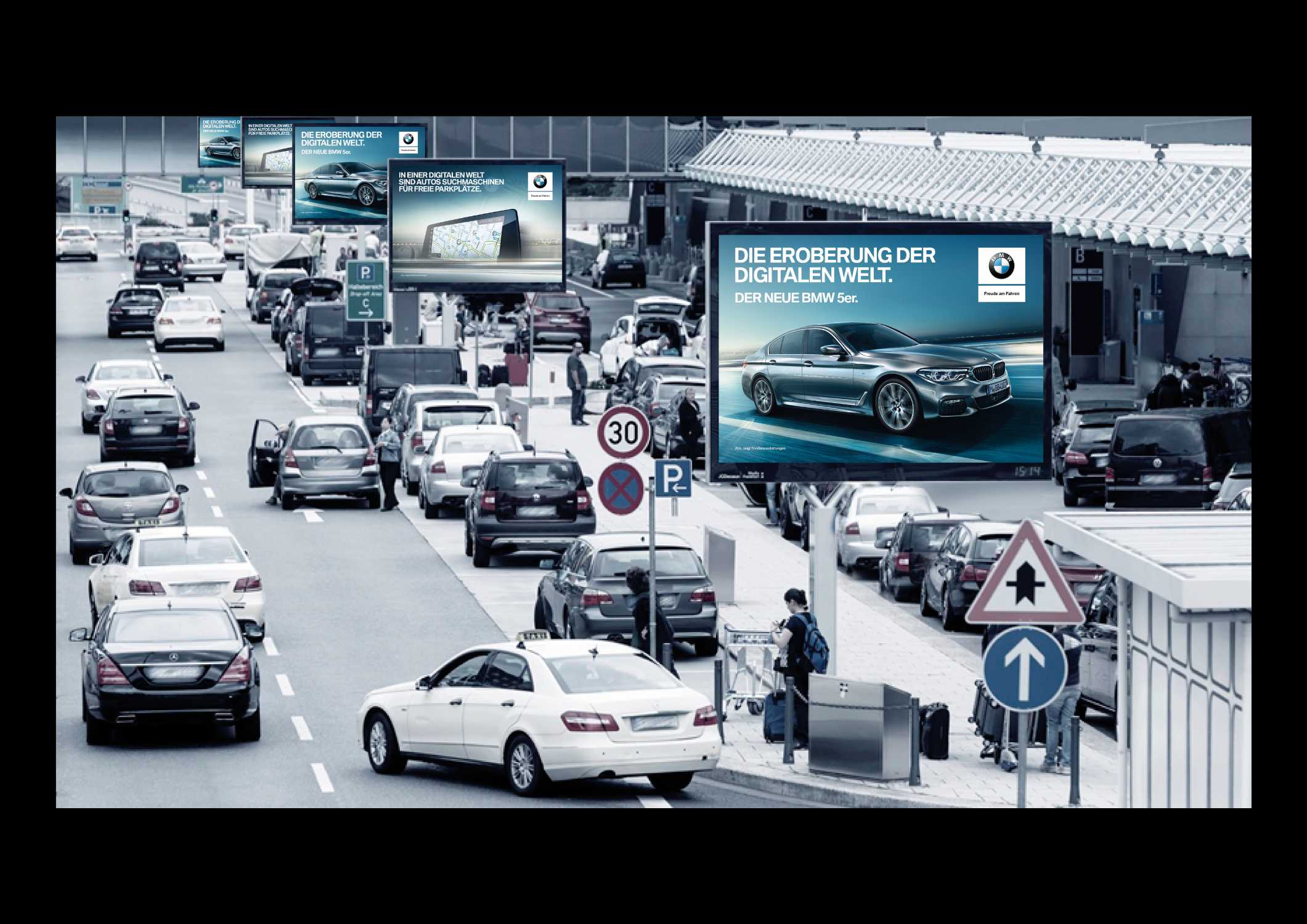DIE EROBERUNG DER DIGITALEN WELT. Kampagne für die neue BMW 5er Limousine in Deutschland. Out Of Home Flughafen. (01/2017)