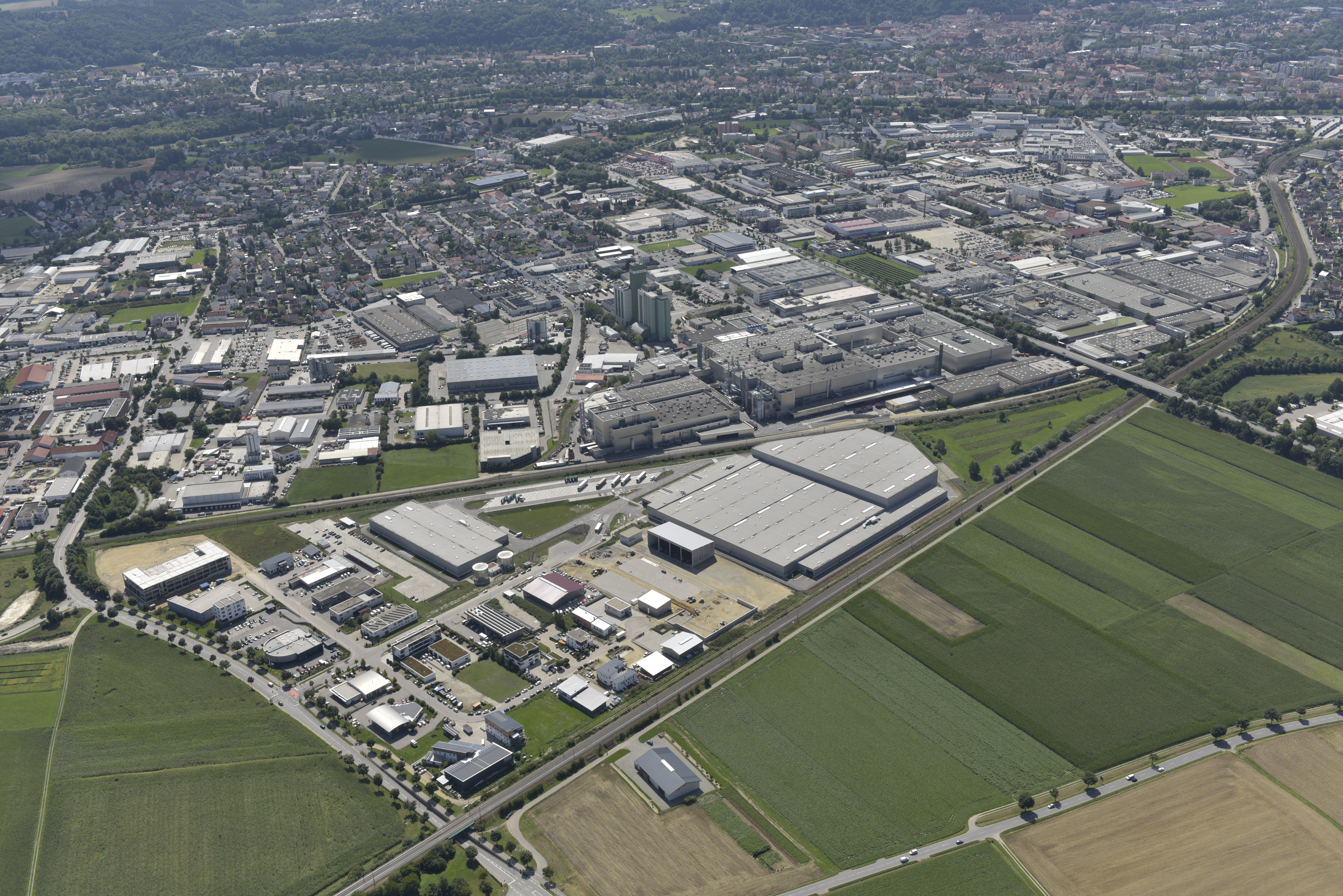Luftaufnahme BMW Group Werk Landshut mit dem neuen Versorgungszentrum.