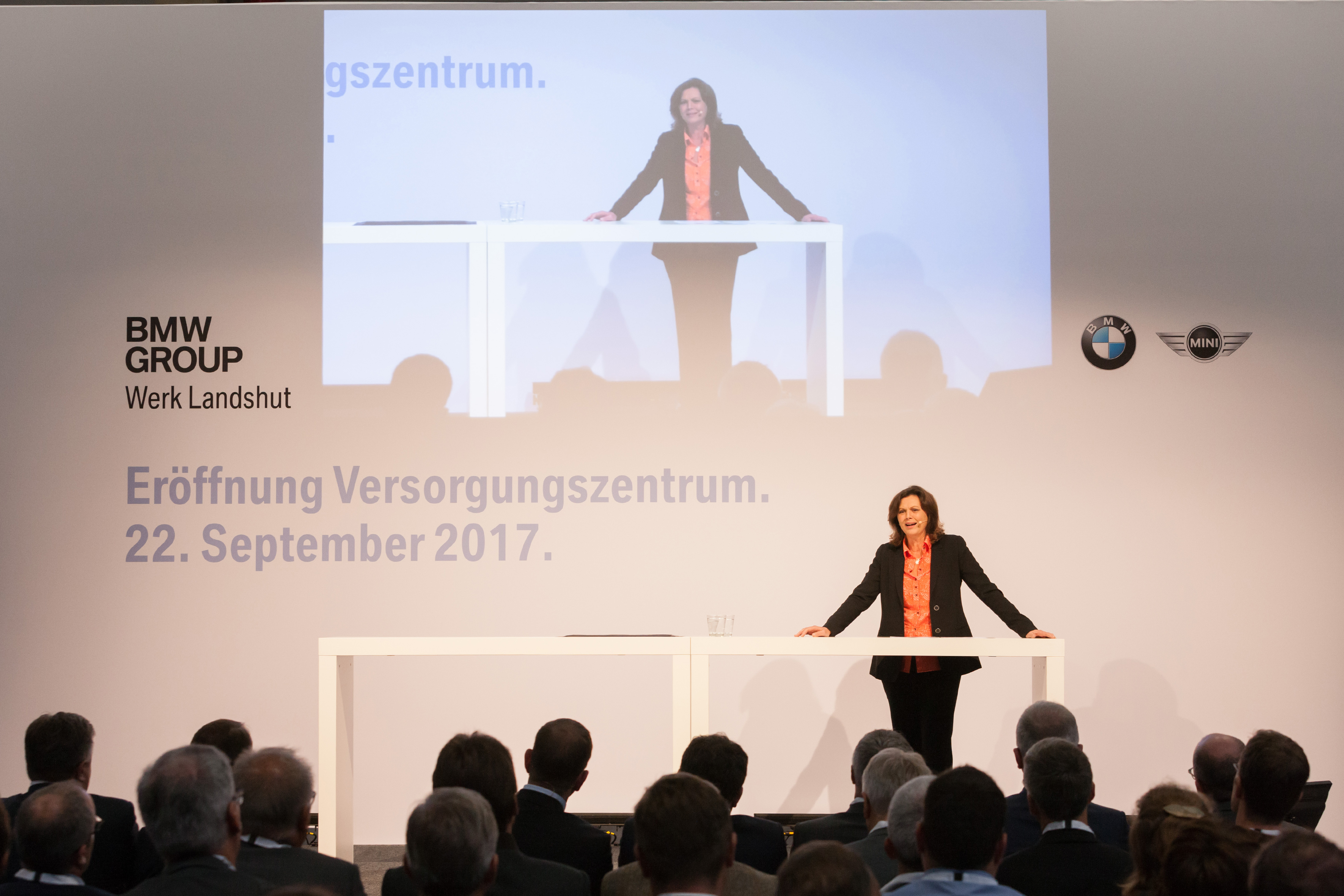 Ilse Aigner, Bayerische Staatsministerin für Wirtschaft und Medien, Energie und Technologie und stellvertretende Ministerpräsidentin, bei der Eröffnung des Versorgungszentrums im BMW Group Werk Landshut (09/2017)