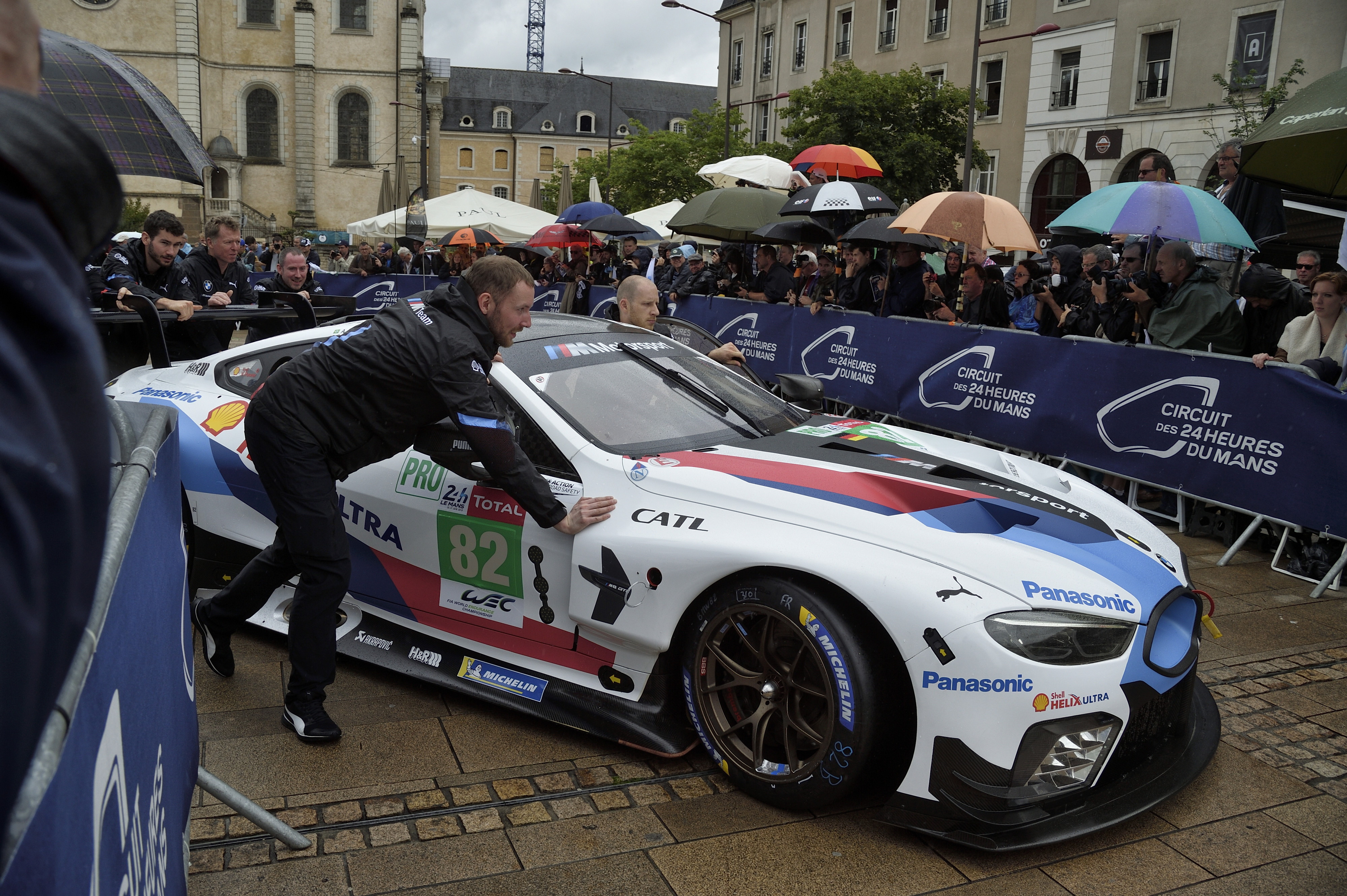 Le Mans (FRA), 11th June 2018. BMW M Motorsport, FIA World Endurance Championship (WEC), 24 Hours of Le Mans, #81 BMW M8 GTE, BMW Team MTEK, Martin Tomczyk (GER), Nicky Catsburg (NED), Philipp Eng (AUT), #82 BMW M8 GTE, BMW Team MTEK, Augusto Farfus (BRA), António Félix da Costa (POR), Alexander Sims (GBR). Verifications Techniques and Administrative Checks.