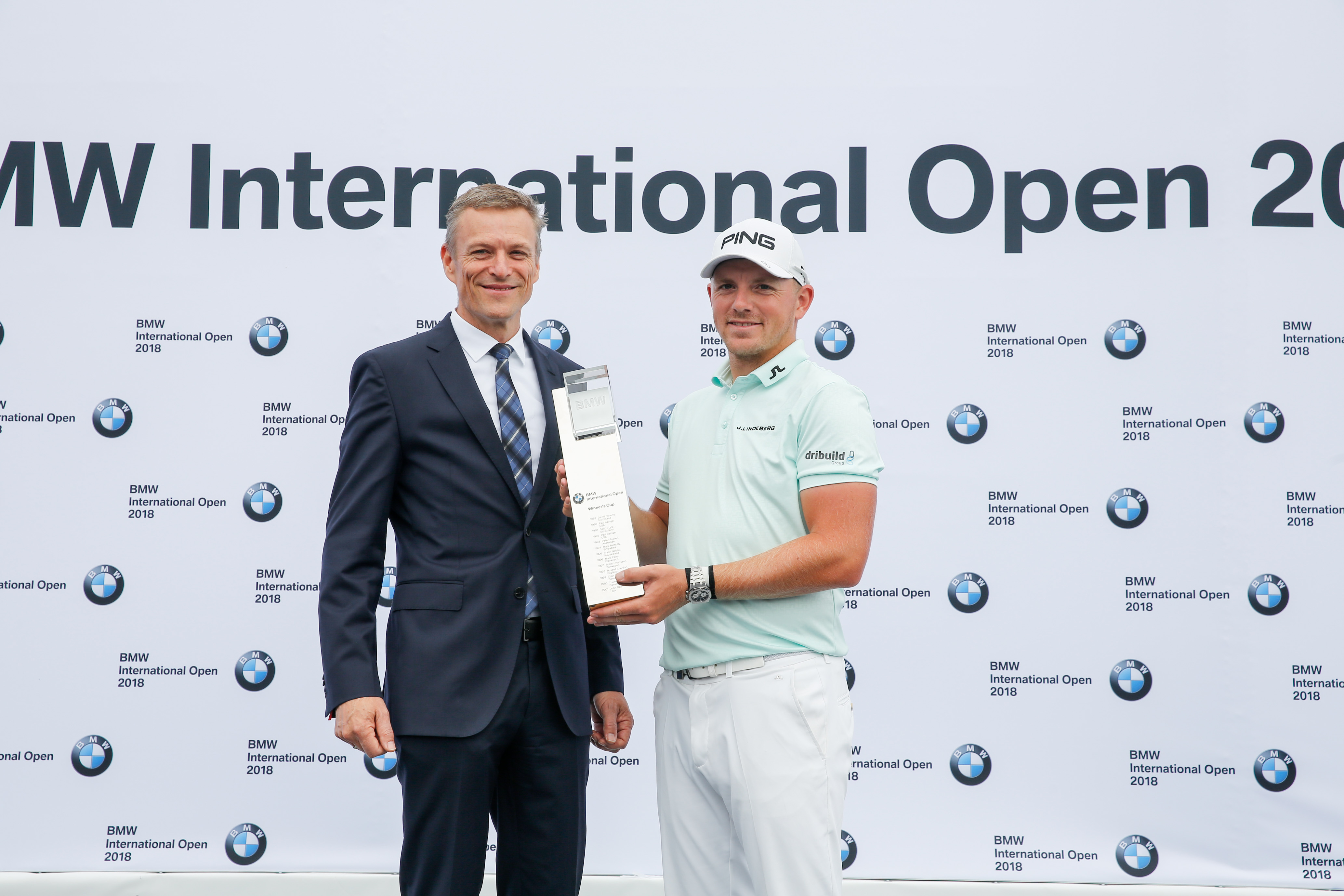 24. Juni 2018, 30. BMW International Open, Peter van Binsbergen, Leiter BMW Vertrieb Deutschland, Matt Wallace, Gewinner der 30. BMW International Open