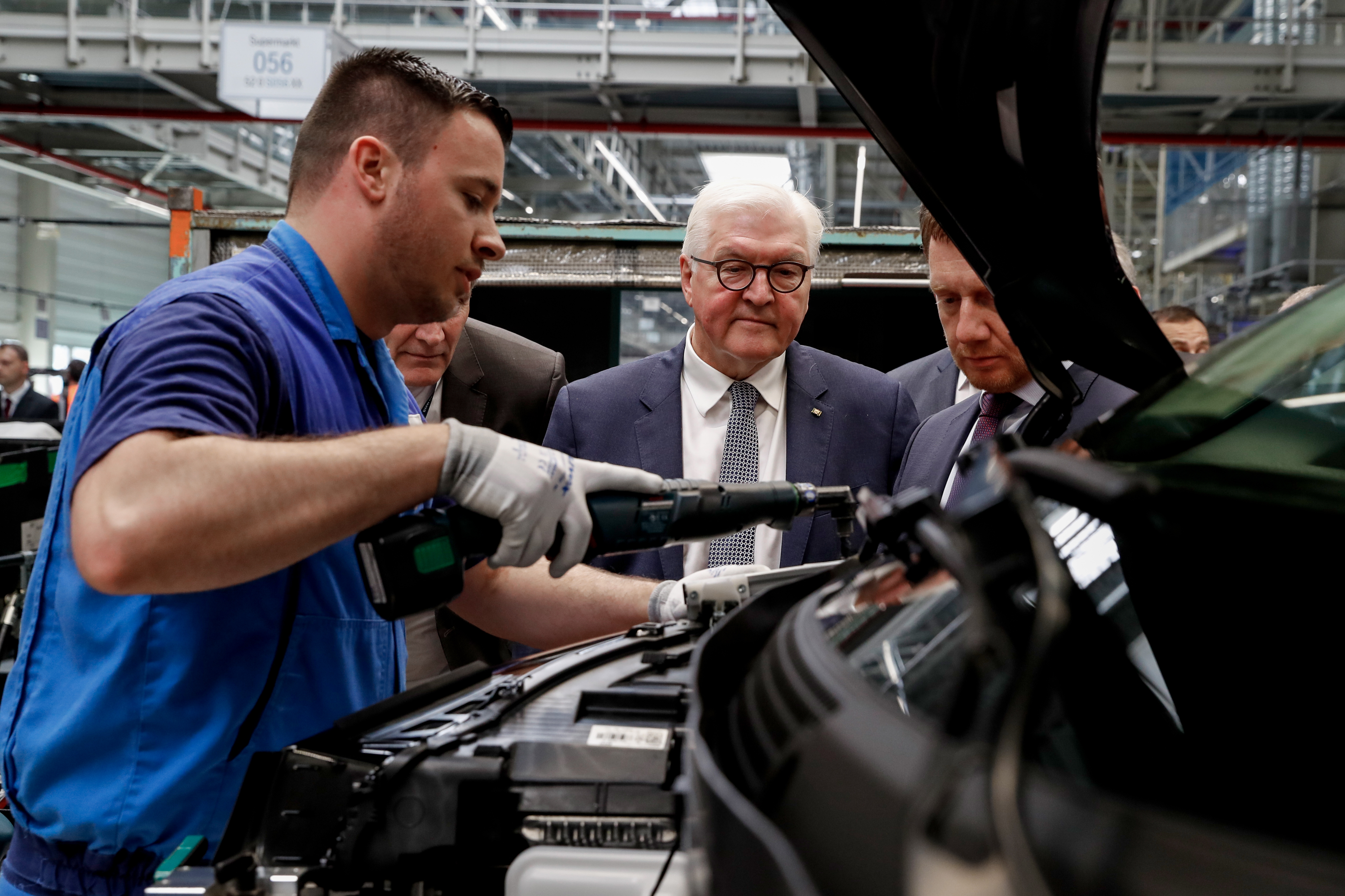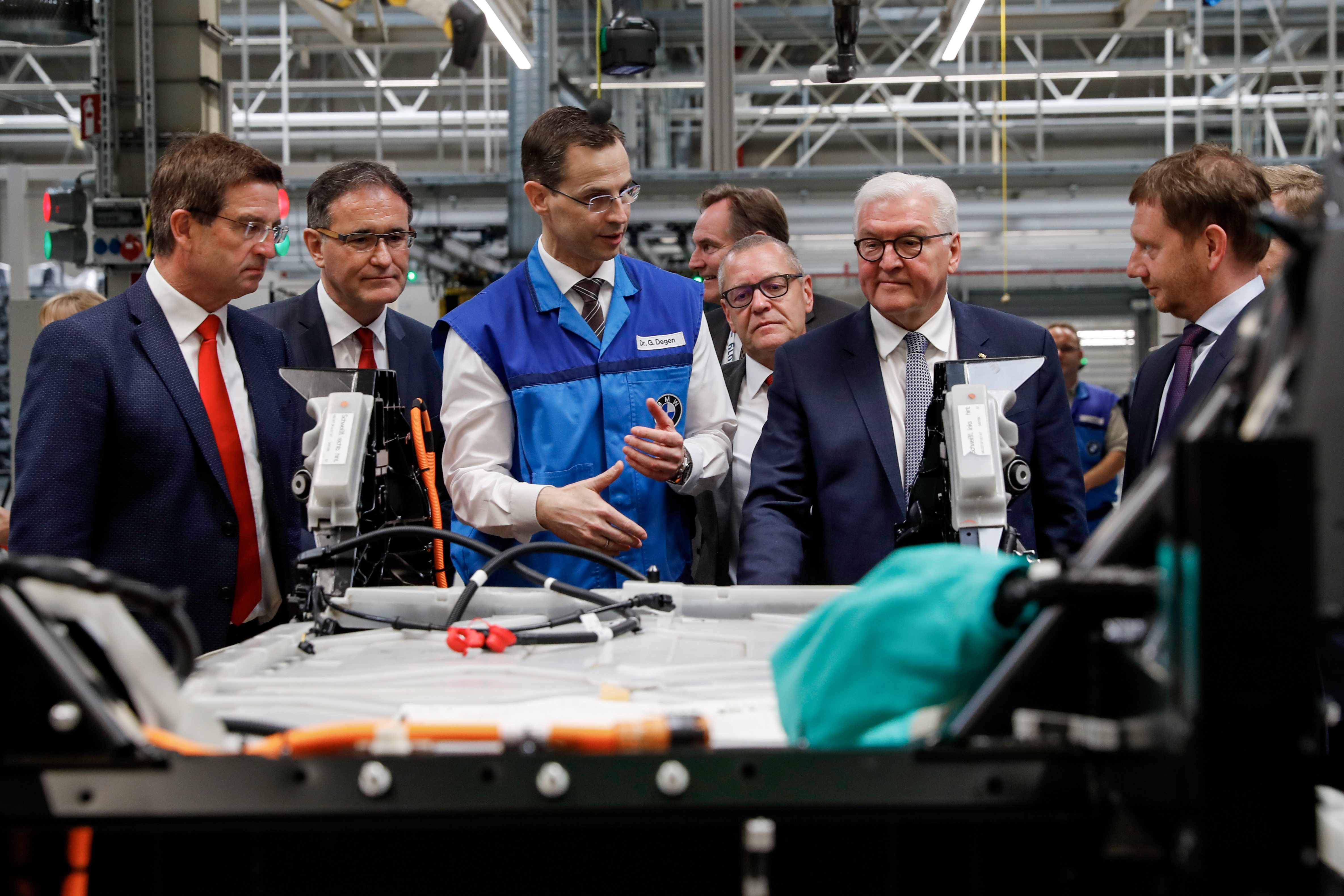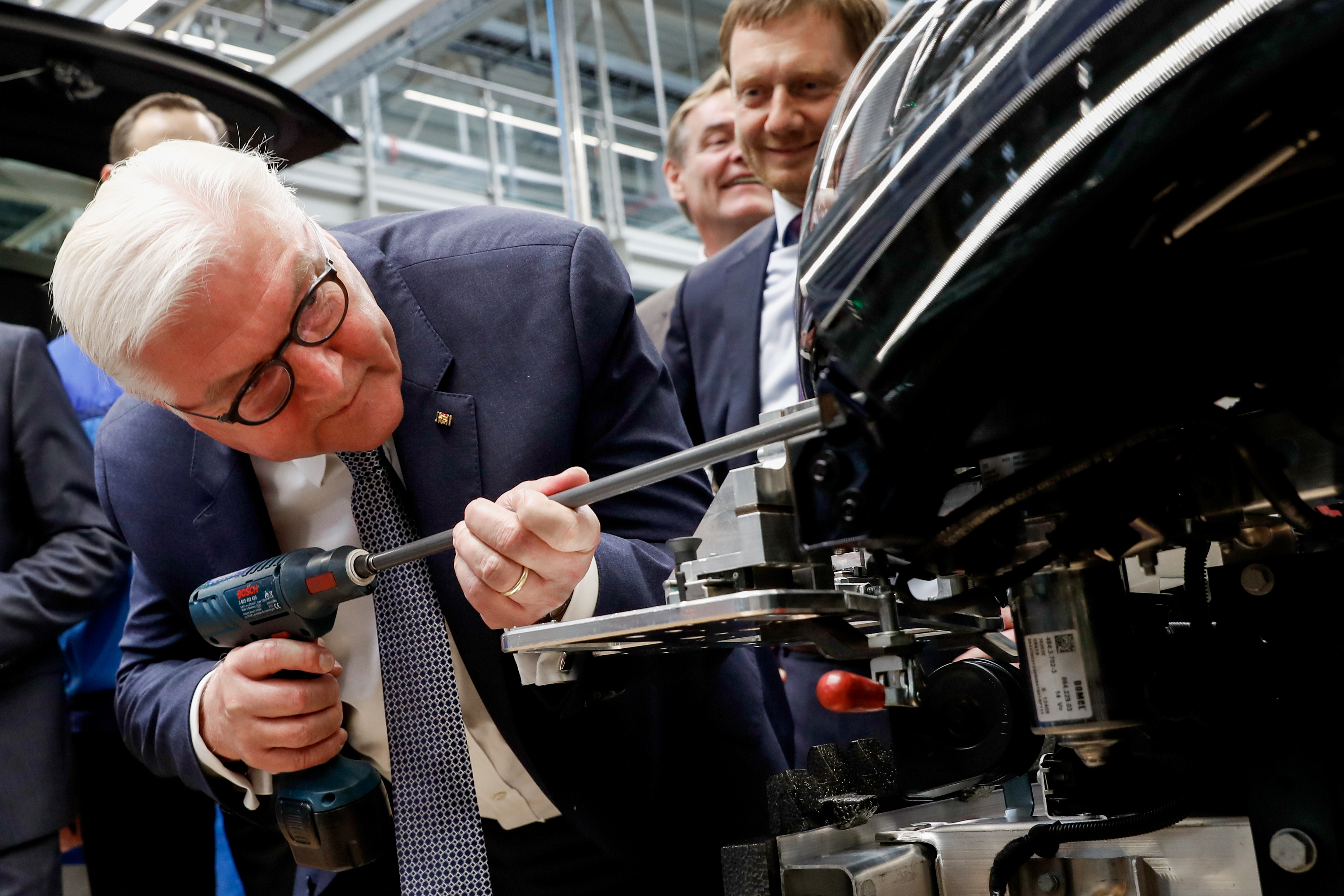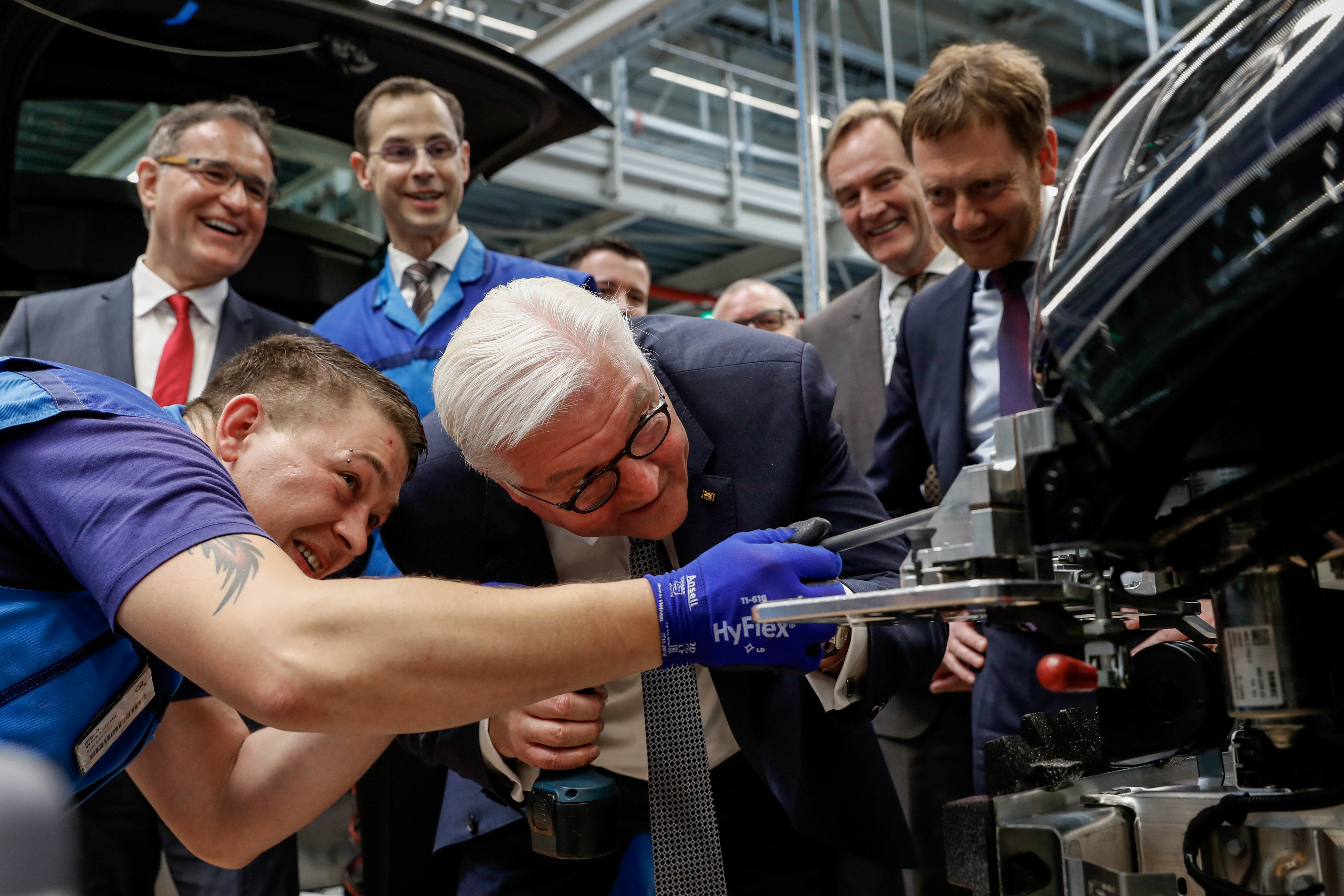 Bundespräsident Steinmeier legte bei der Montage eines BMW i3 selbst Hand an. (05/2019)