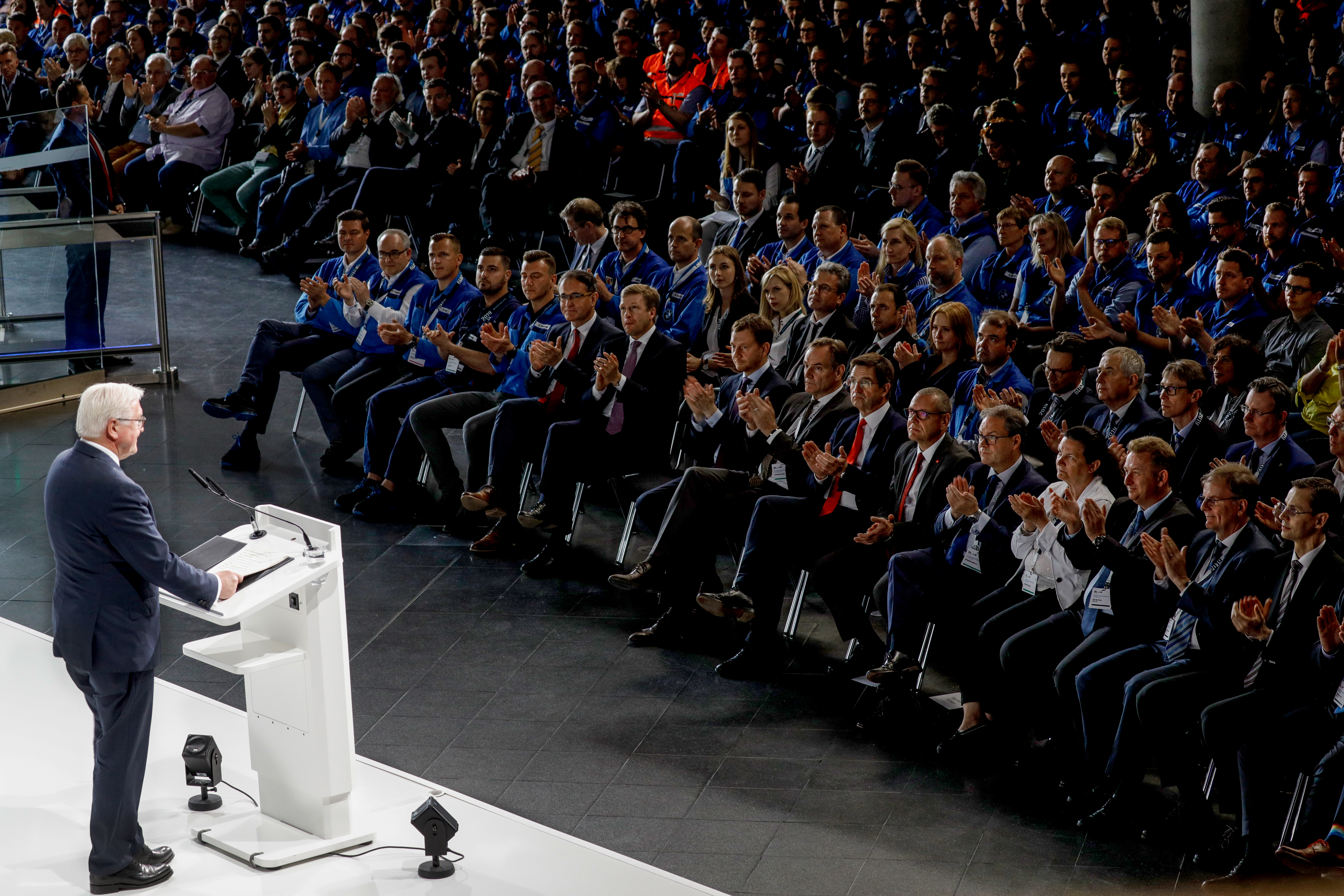 Bundespräsident Frank-Walter Steinmeier betont im BMW Group Werk Leipzig vor 2.500 Mitarbeitern die Bedeutung Europas. (05/2019)