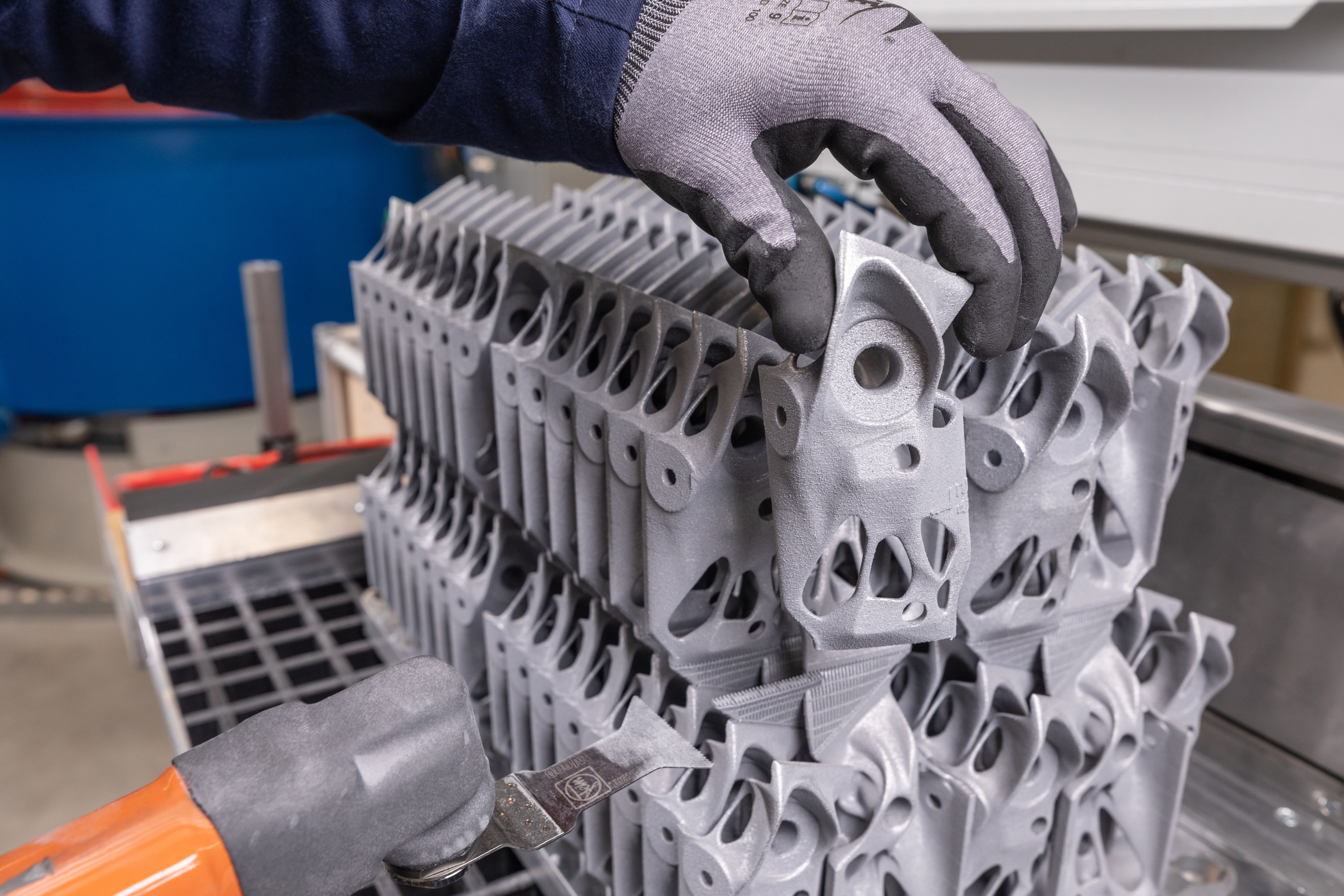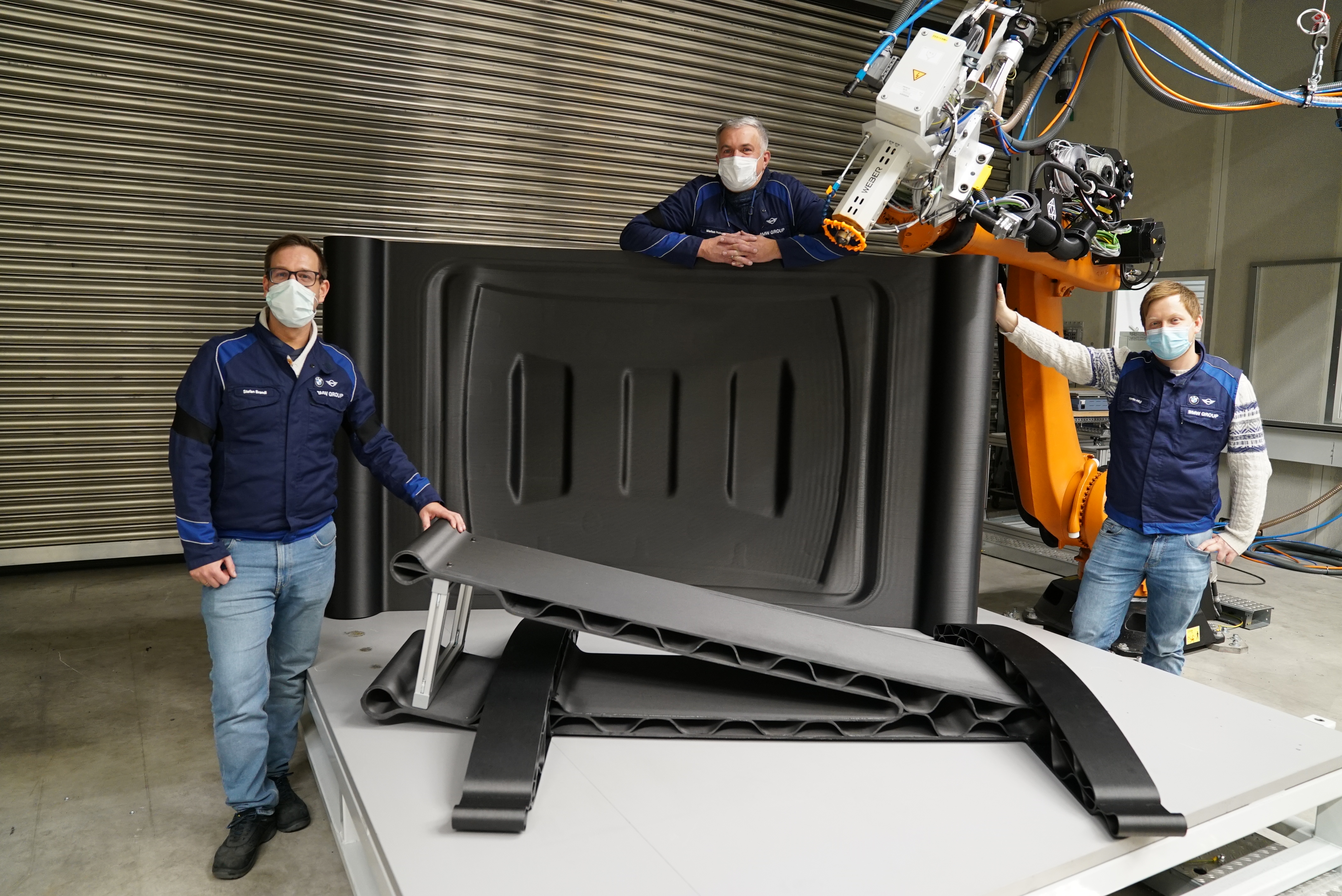 3D-Druck im BMW Group Werk Landshut: Im Landshuter Leichtbau- und Technologiezentrum der BMW Group ist erstmals ein besonders großflächiges Bauteil im 3D-Druckverfahren entstanden, ein Greifer für einen Roboter. (12/2020)