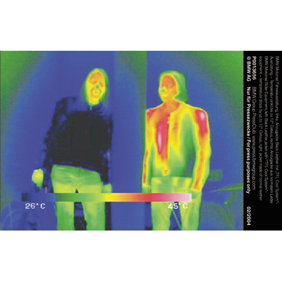 BMW Motorrad Fahrerausstattung. Links: Anzugjacke Black Leather mit "TFL Cool System"-Ausrüstung - Temperatur sinkt bis zu 12° Celsius , rechts: Anzugjacke aus normalen Leder (01/2004)
