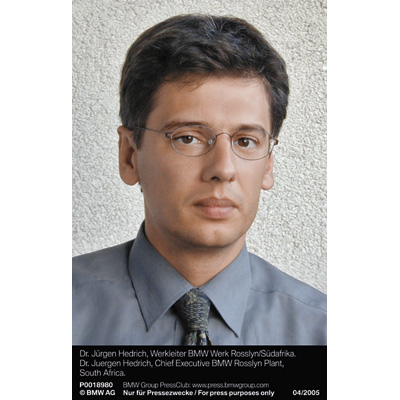 Dr. Jürgen Hedrich, Werkleiter BMW Werk Rosslyn/Südafrika (05/2005)