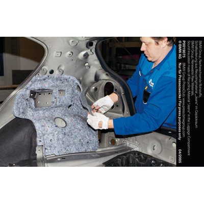 BMW Group, Nachwachsende Rohstoffe, Einbau Schallisolierung aus Recyclingmaterial "Jeans" im Gepäckraum (04/2005)