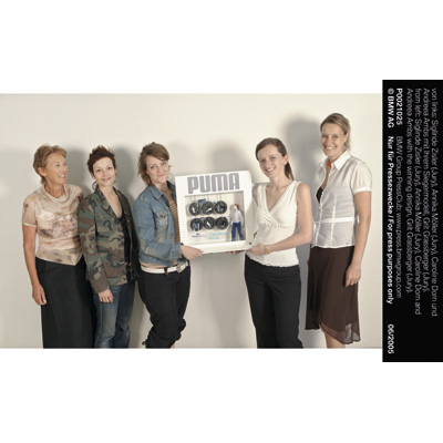 von links: Siglinde Zisler (Jury), Annika Möller (Jury), Caroline Dorn und Andreea Ambs mit Ihrem Siegermodell, Grit Grassberger (Jury) (06/2005)