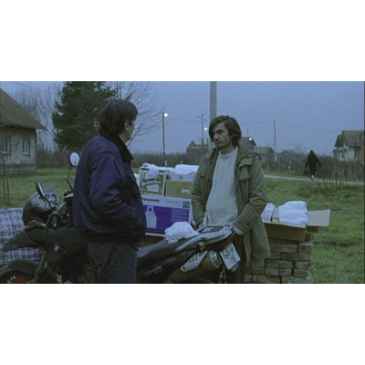 Stille Sehnsucht - Warchild. Ein Film von Christian Wagner: Schlepper (Zdenko Jelcic) diskutiert mit Samir (Senad Basic) in Bosnien über die Zukunft (11/2006)