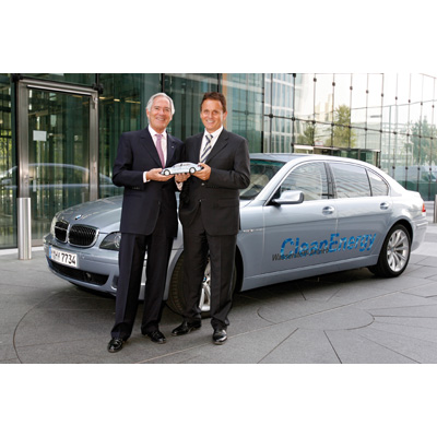 Prof. Dr. h.c. Roland Berger, Gründer der gleichnamigen Unternehmensberatung, und Helmut Maier, Leiter internationaler Großkunden- und Direktvertrieb bei der Übergabe des BMW Hydrogen 7 (v.l.) (05/2007)