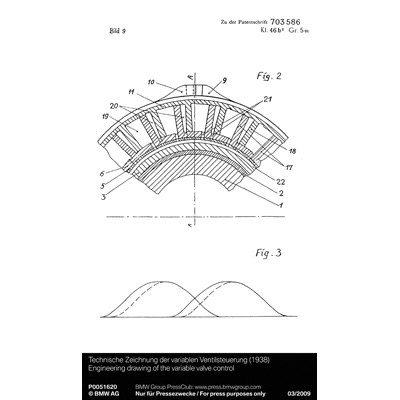 Technische Zeichnung der variablen Ventilsteuerung (1938) (03/2009)
