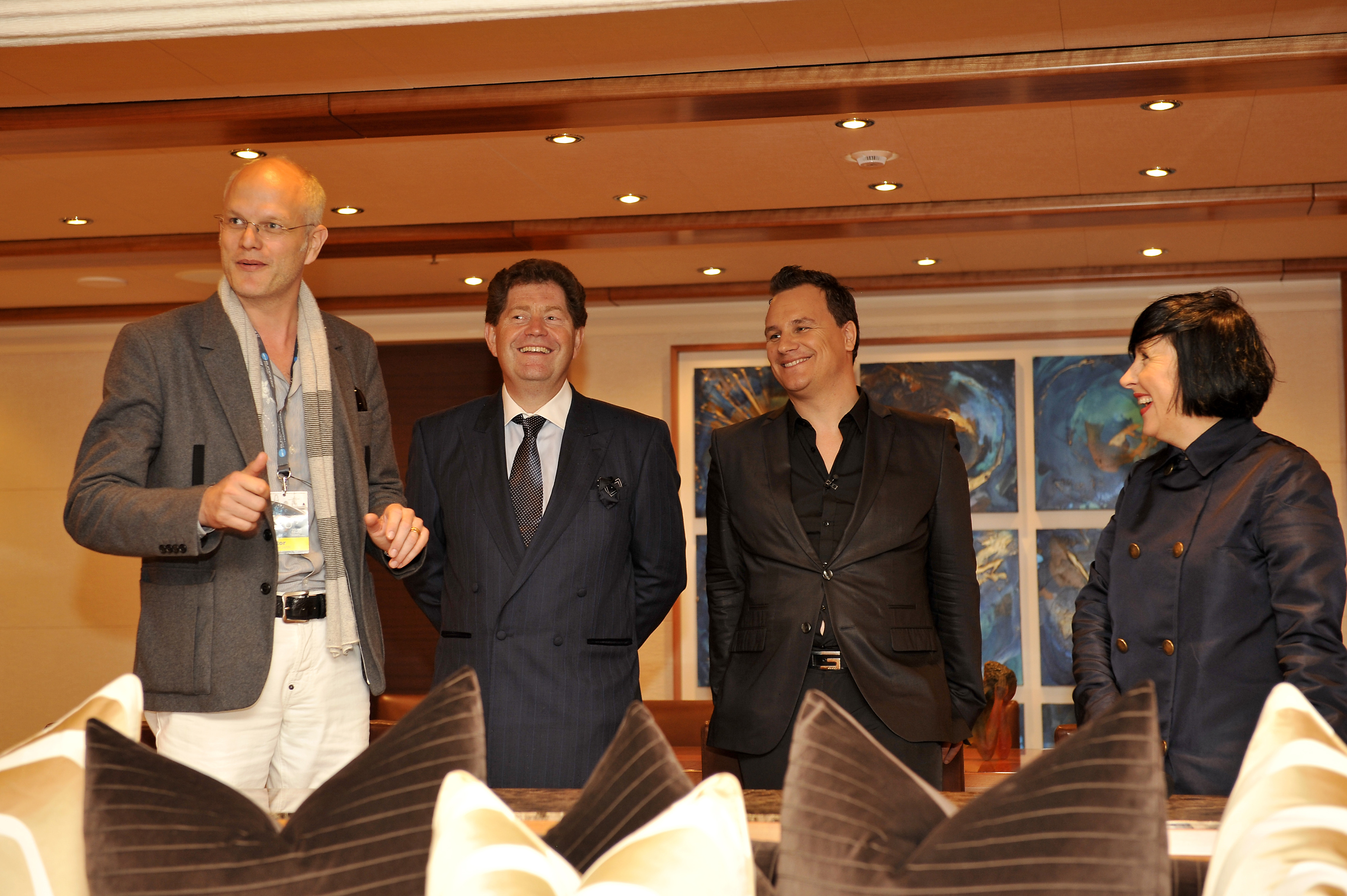 BMW auf der Monaco Yacht Show: Design Talk mit (von links) Nikolaus Graf von Saurma-Jeltsch, Leiter des Münchener Studios von BMW Group DesignworksUSA, Yachtdesigner Andrew Winch, Modedesigner Guido Maria Kretschmer und Moderatorin Alice Rawsthorn, International Herald Tribune (09/2010)