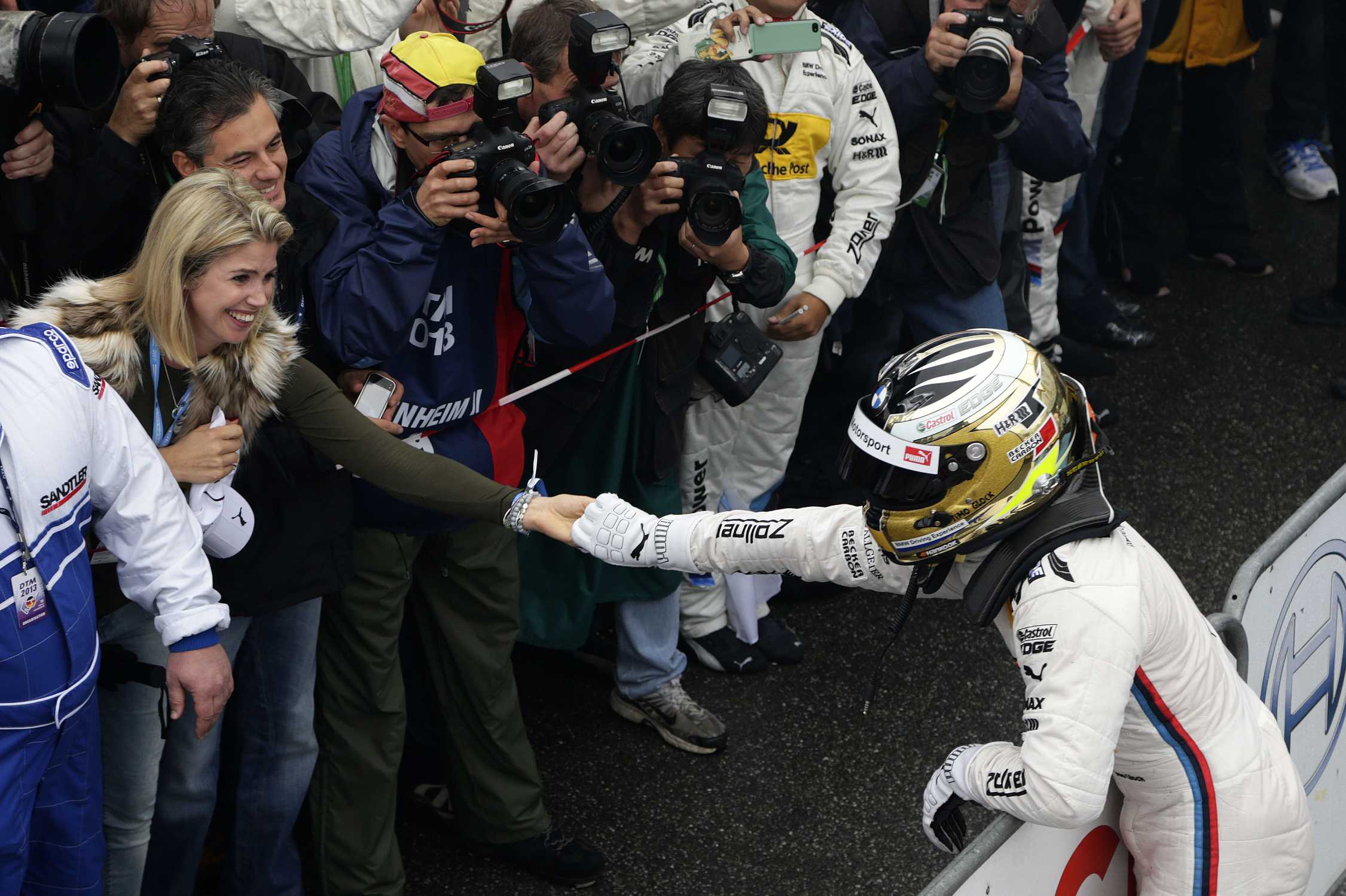 Hockenheim (DE) 20th October 2013. BMW Motorsport. Girlfriend Isabell Reis (DE) and Winner Timo Glock (DE) BMW Works Driver. This image is copyright free for editorial use © BMW AG (10/2013).