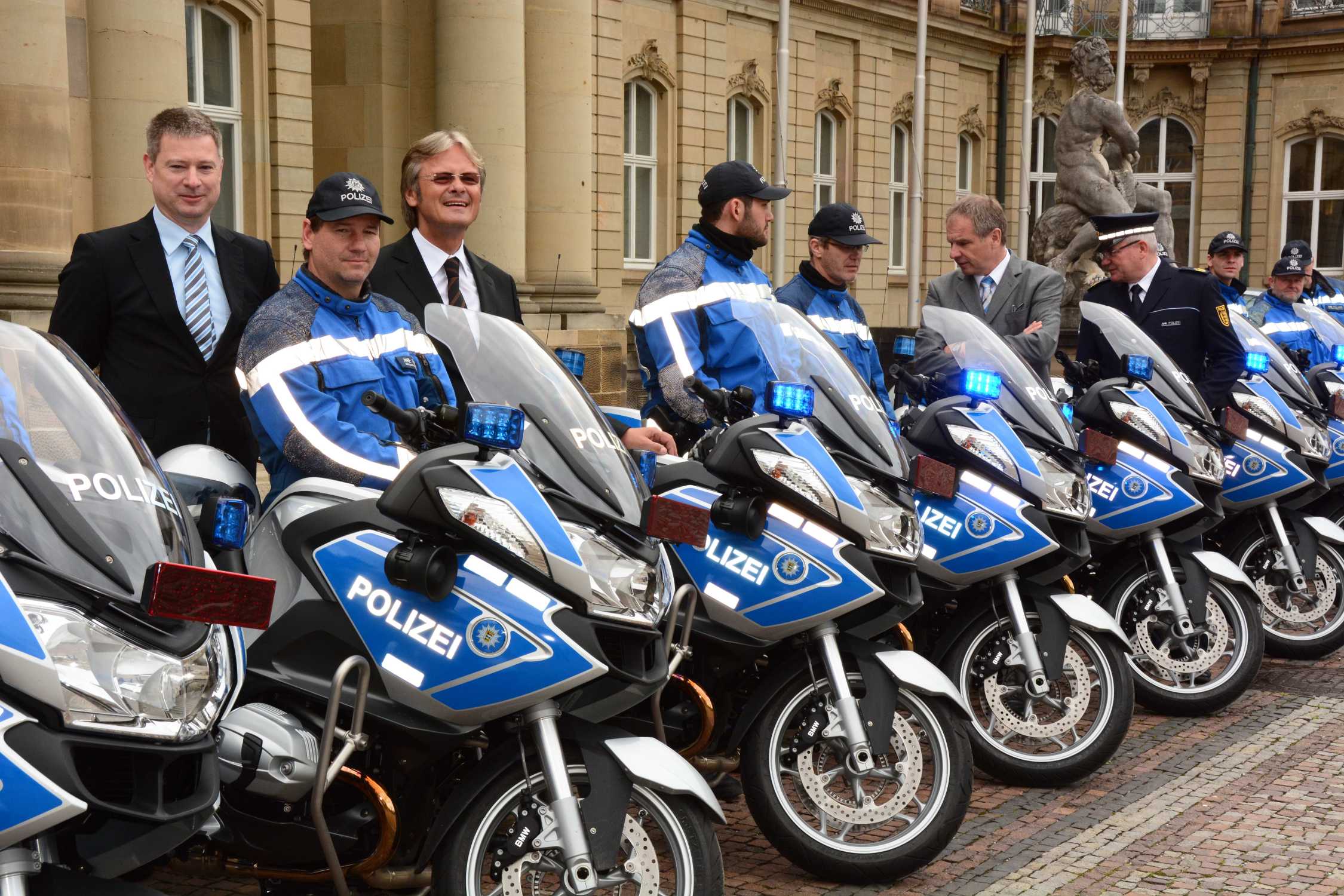 Übergabe BMW R 1200 RT Behördenfahrzeuge an Polizei Baden-Württemberg, v.l.n.r. Leiter BMW Motorrad Deutschland Henning Putzke, Leiter BMW ...