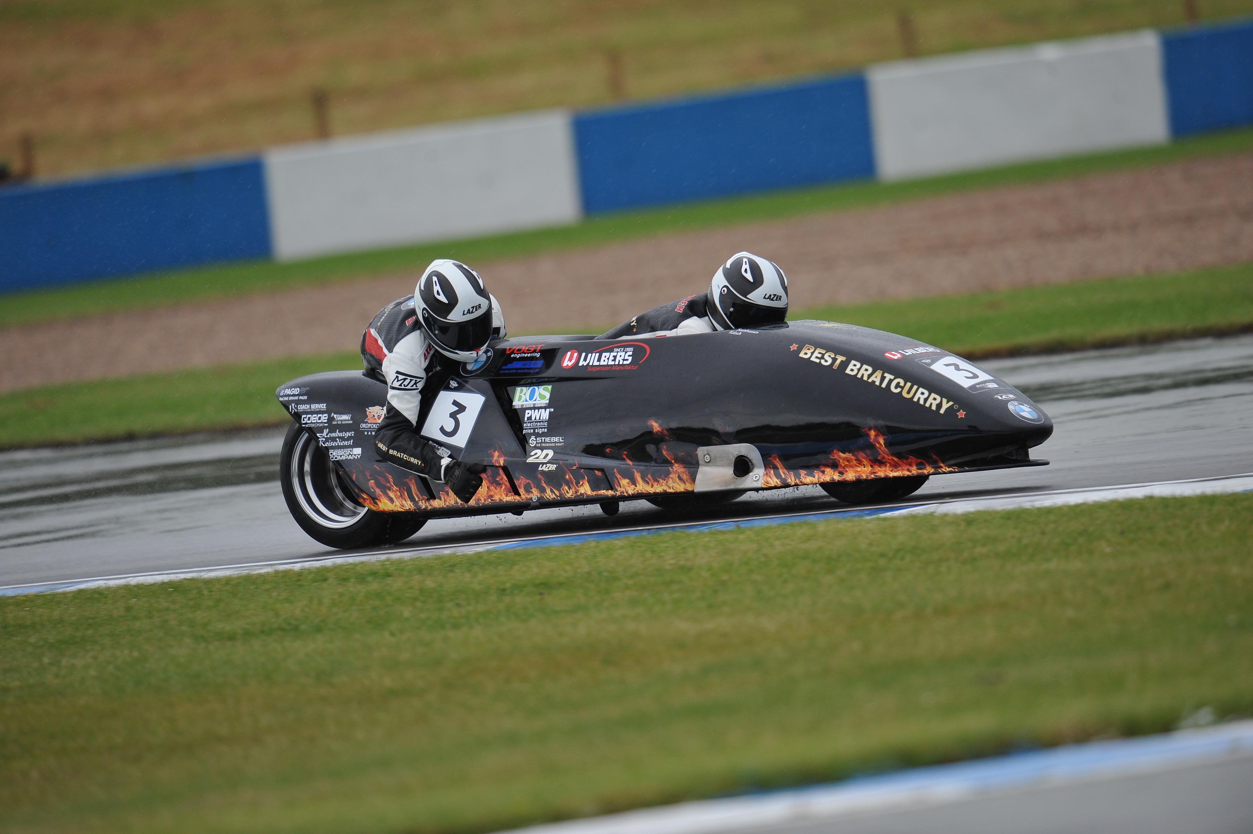 Donington (GBR) 24th May 2014. BMW Steinhausen Racing Riders Steinhausen/Kölsch #3 (GER) riding sidecar LCR powered BMW. This image is copyright free for editorial use © BMW AG