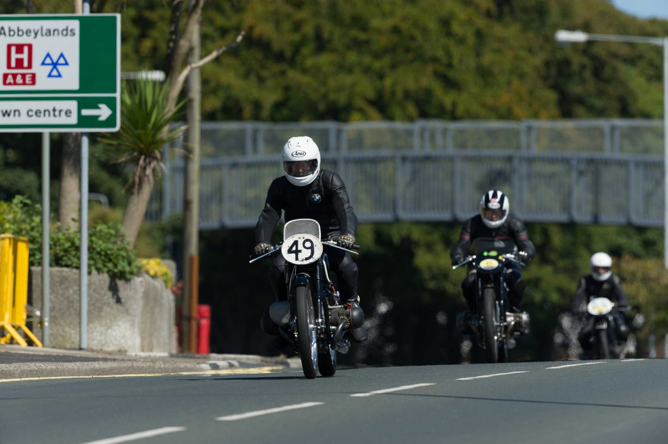 BMW Group Classic auf der Classic TT 2014, Wolfgang Meier auf Kompressor BMW 255 (1939), Ralf Schneider auf BMW R 51 (1939), Sebastian Gutsch auf BMW R 63 (1929), (09/2014)