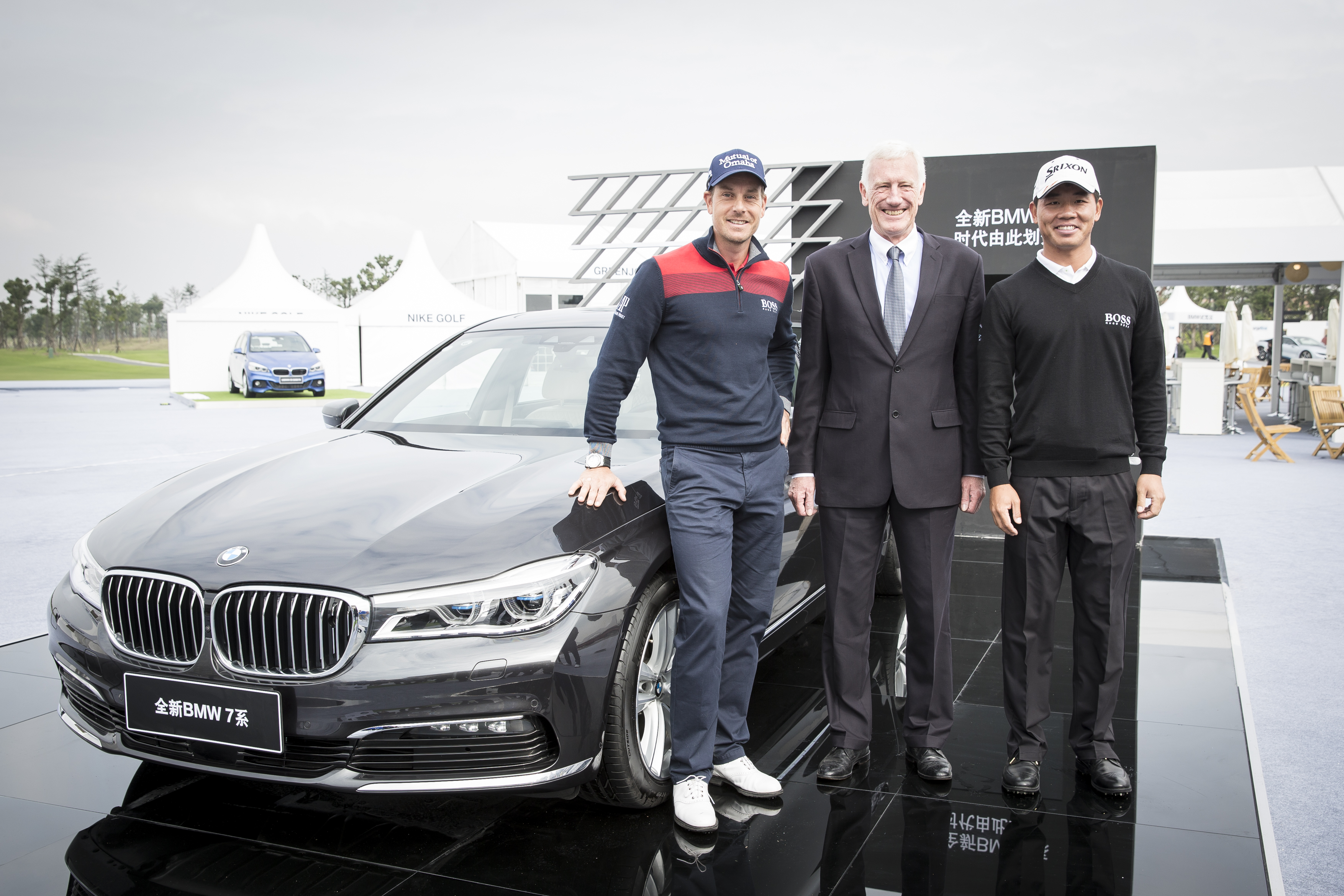 10th November 2015, Henrik Stenson, Ulrich Sanne, Wu Ashun, BMW 7 Series, BMW Masters 2015. This image is copyright free for editorial use © BMW AG (11/2015).