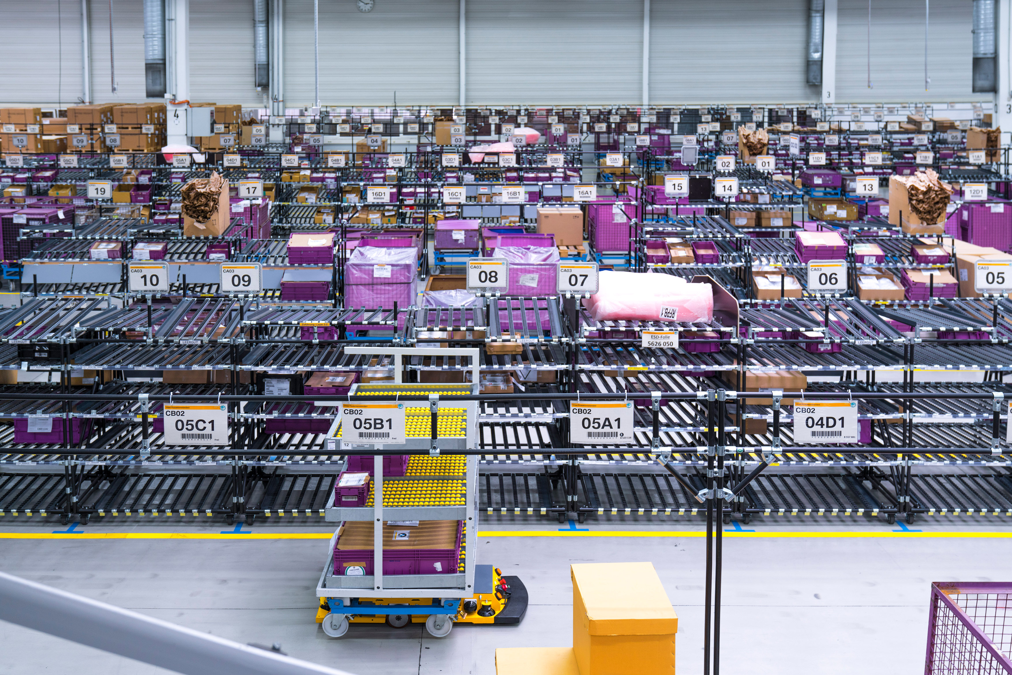 Smart Transport Roboter transportiert Rollcontainer durch Logistikhalle in BMW Group Werk Wackersdorf (11/2016)