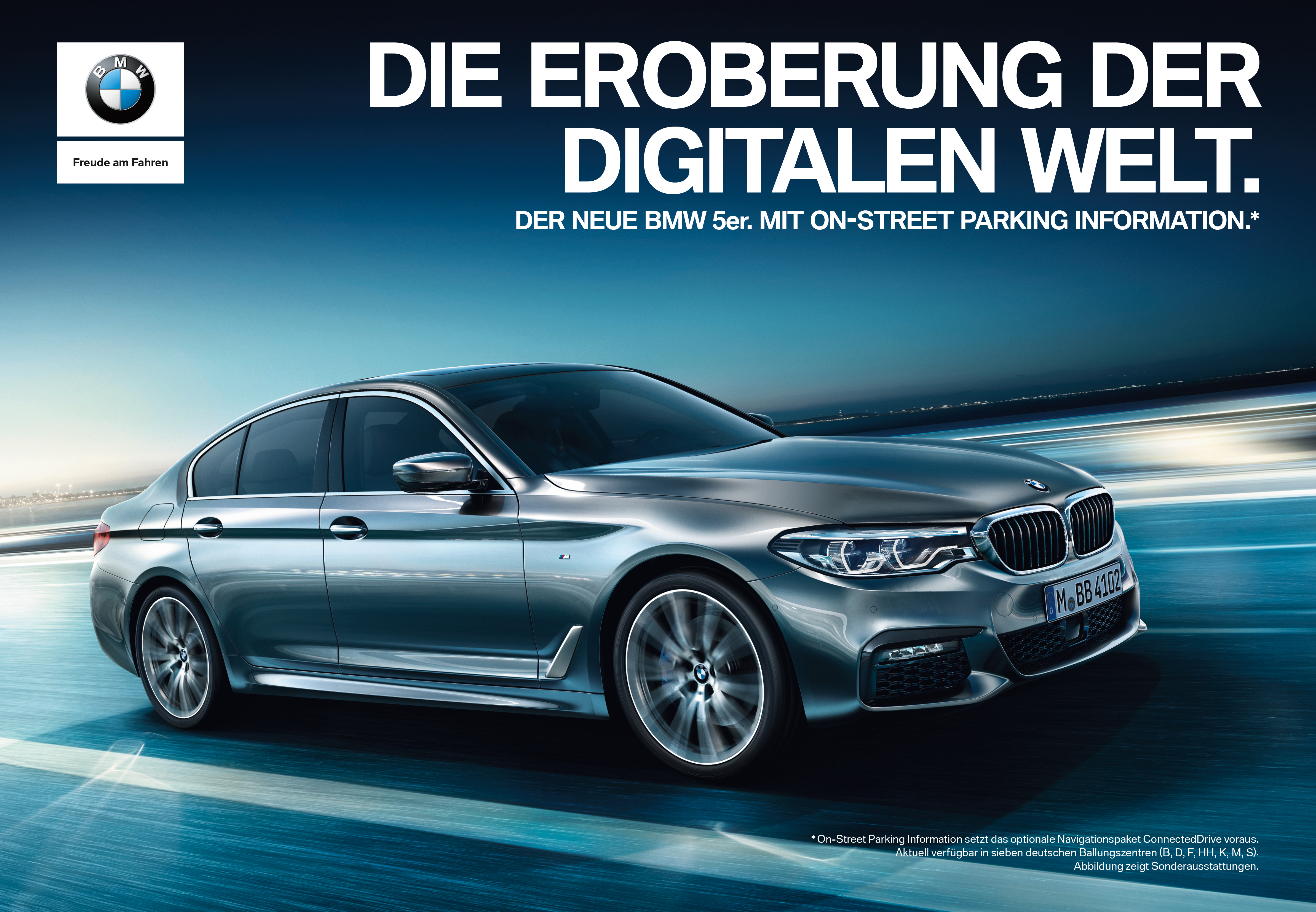 DIE EROBERUNG DER DIGITALEN WELT. Kampagne für die neue BMW 5er Limousine in Deutschland. Printmotiv Titelgatefolder. (01/2017)