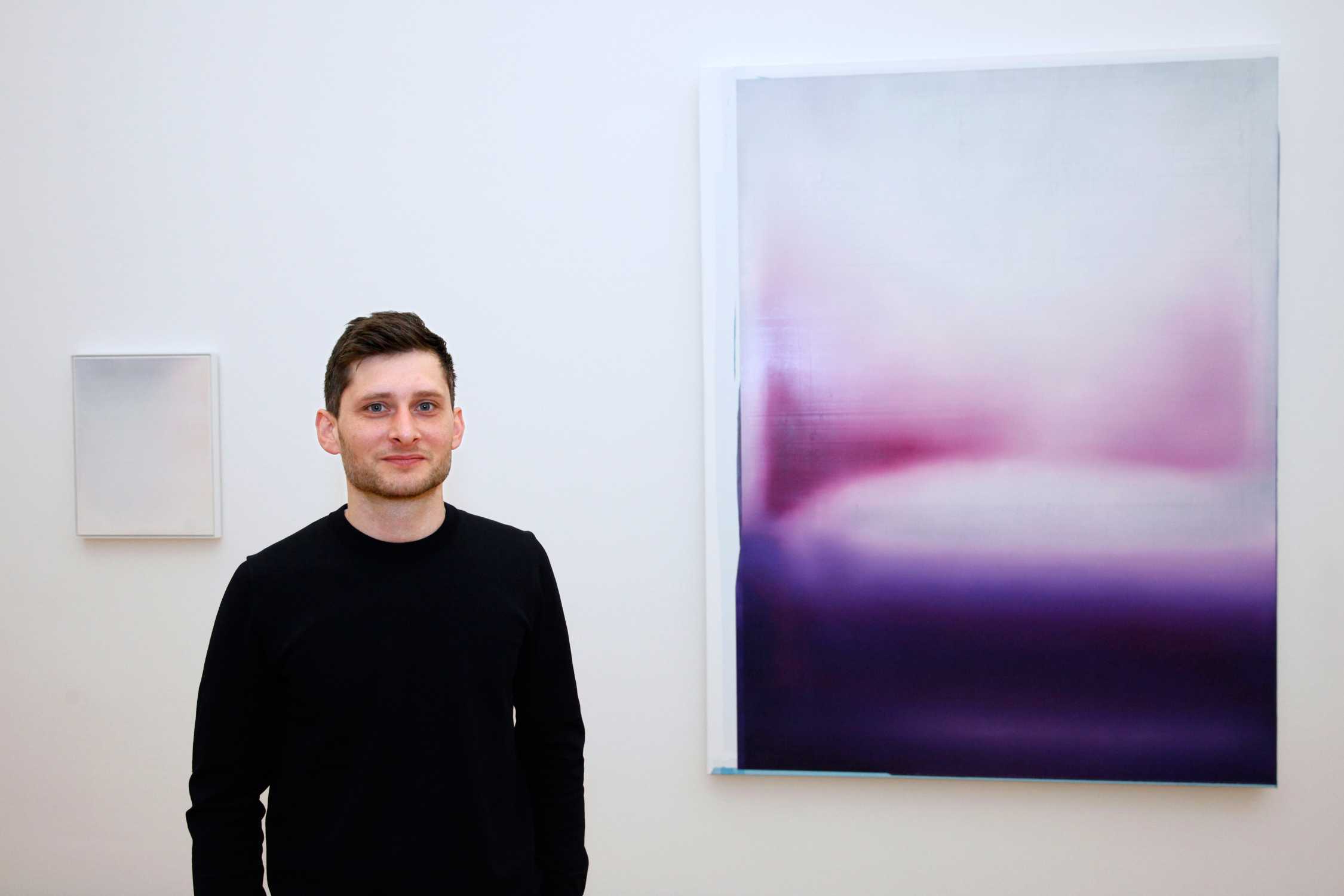 Der Künstler Benedikt Leonhardt vor der Schenkung "Untitled (WF-B-QM/V-4)", 2016 im Museum der bildenden Künste Leipzig © PUNCTUM/Alexander Schmidt ...