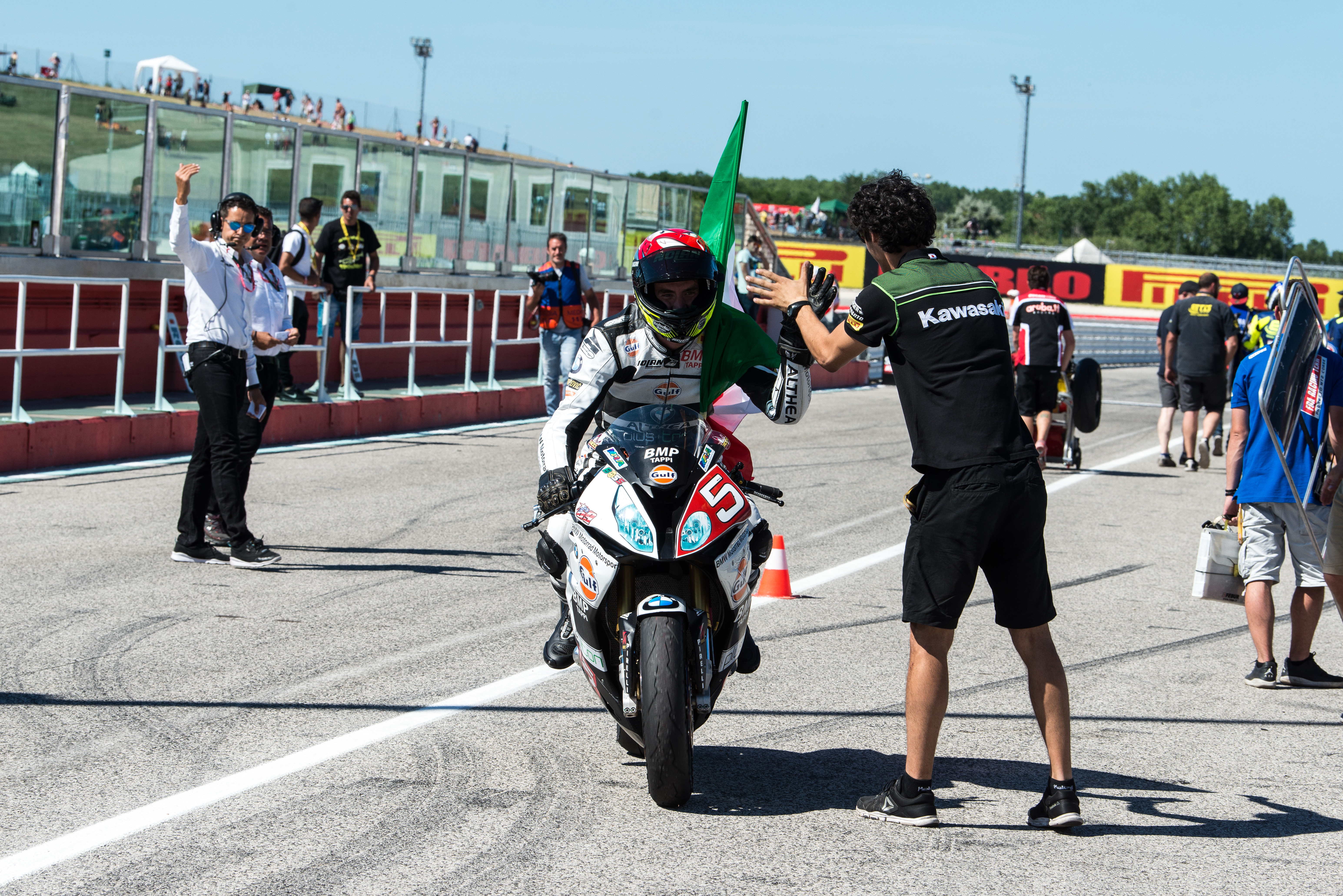 Misano Adriatico (ITA) STK1000 18th June 2017. Althea BMW Racing Team Rider Marco Faccani #5 (ITA) riding the BMW S1000RR.