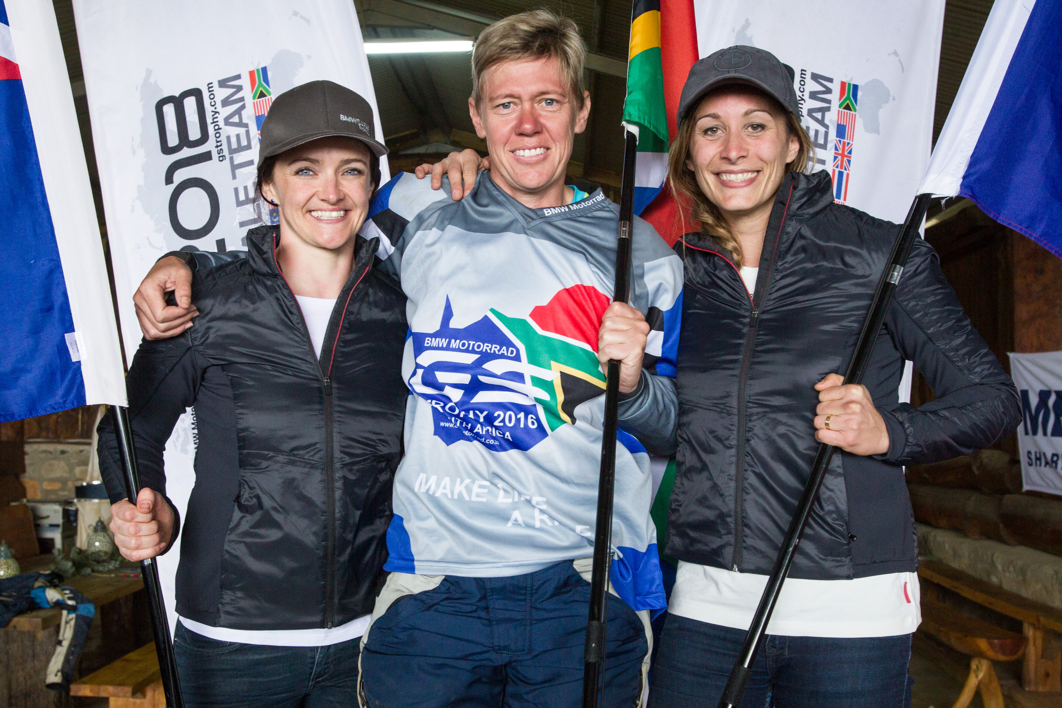 BMW Motorrad International GS Trophy Female Team Qualifying 2017. v.l.n.r.:Julia Maguire (Australia), Ezelda van Jaarsveld (South Africa), Sonia Barbot (France). (11/2017)