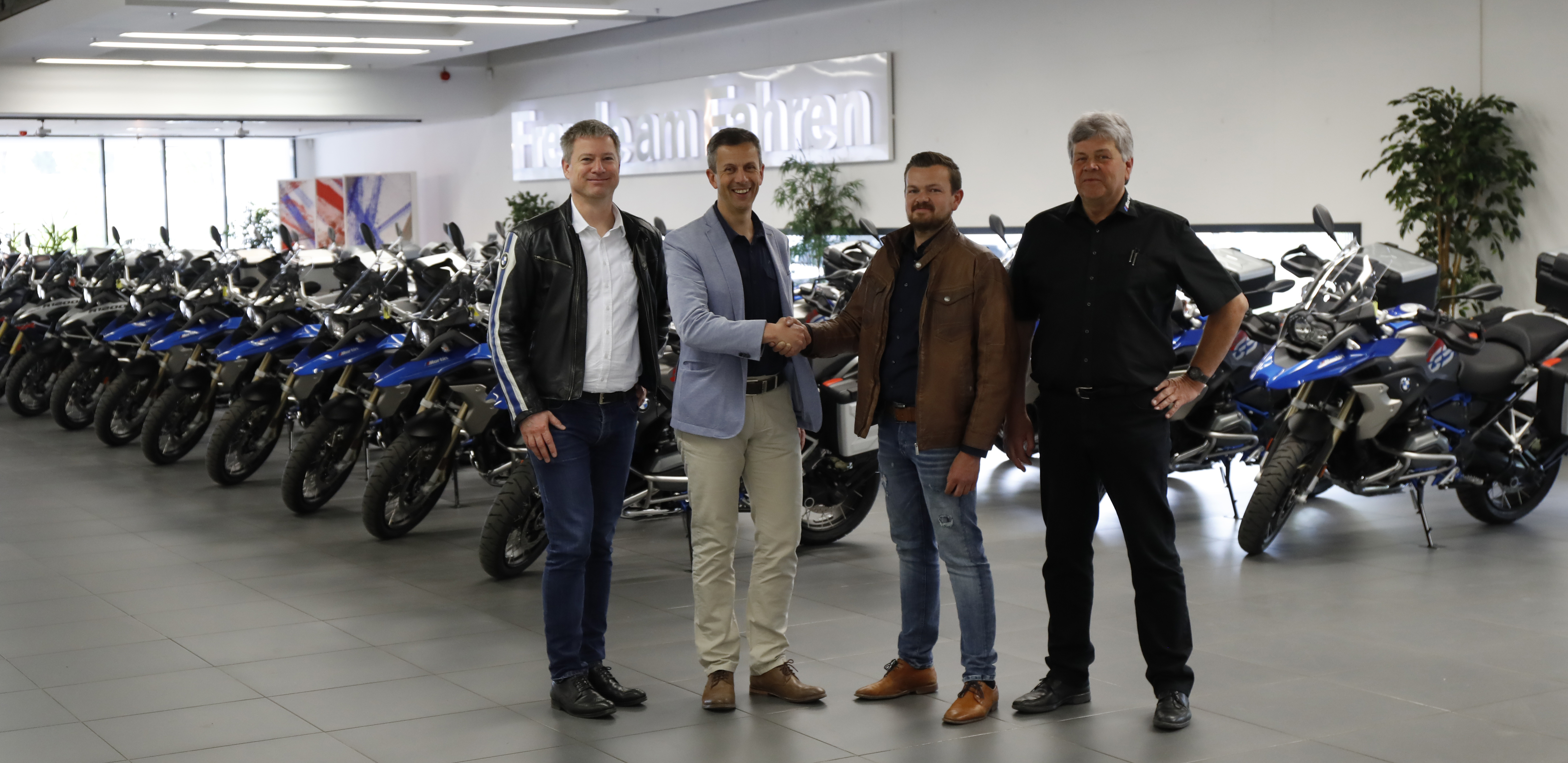 Übergabe von 36 BMW Motorrädern an die Edelweiss Bike Travel Reisegesellschaft m.b.H. am 26.04.2018 im BMW Group Kundencenter München-Freimann; von links: Henning Putzke (Leiter BMW Motorrad Deutschland), Rainer Buck (Geschäftsführer Edelweiss Bike Travel Reisegesellschaft m.b.H.), Patrick Martin (Erwin Martin GmbH), Georg Martin (Erwin Martin GmbH) (04/2018)