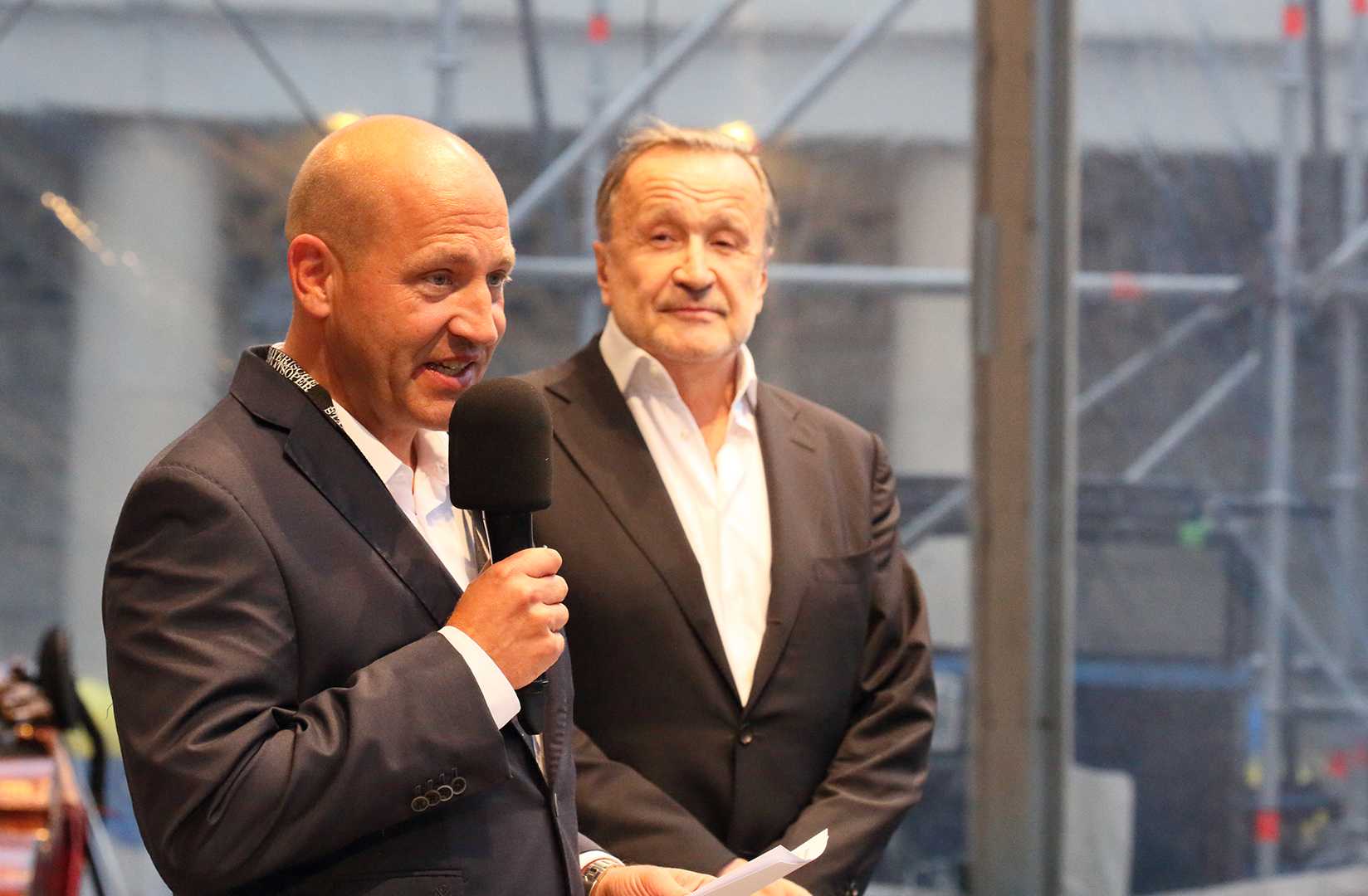 Oper für alle 2018: Festspielkonzert auf dem Marstallplatz in München am 21.07.2018: Nikolaus Bachler, Staatsintendant der Bayerischen Staatsoper, und Christian Hochapfel, Leiter Gesamtverkauf Neue Automobile der BMW Niederlassung München. © Wilfried Hösl (07/2018)
