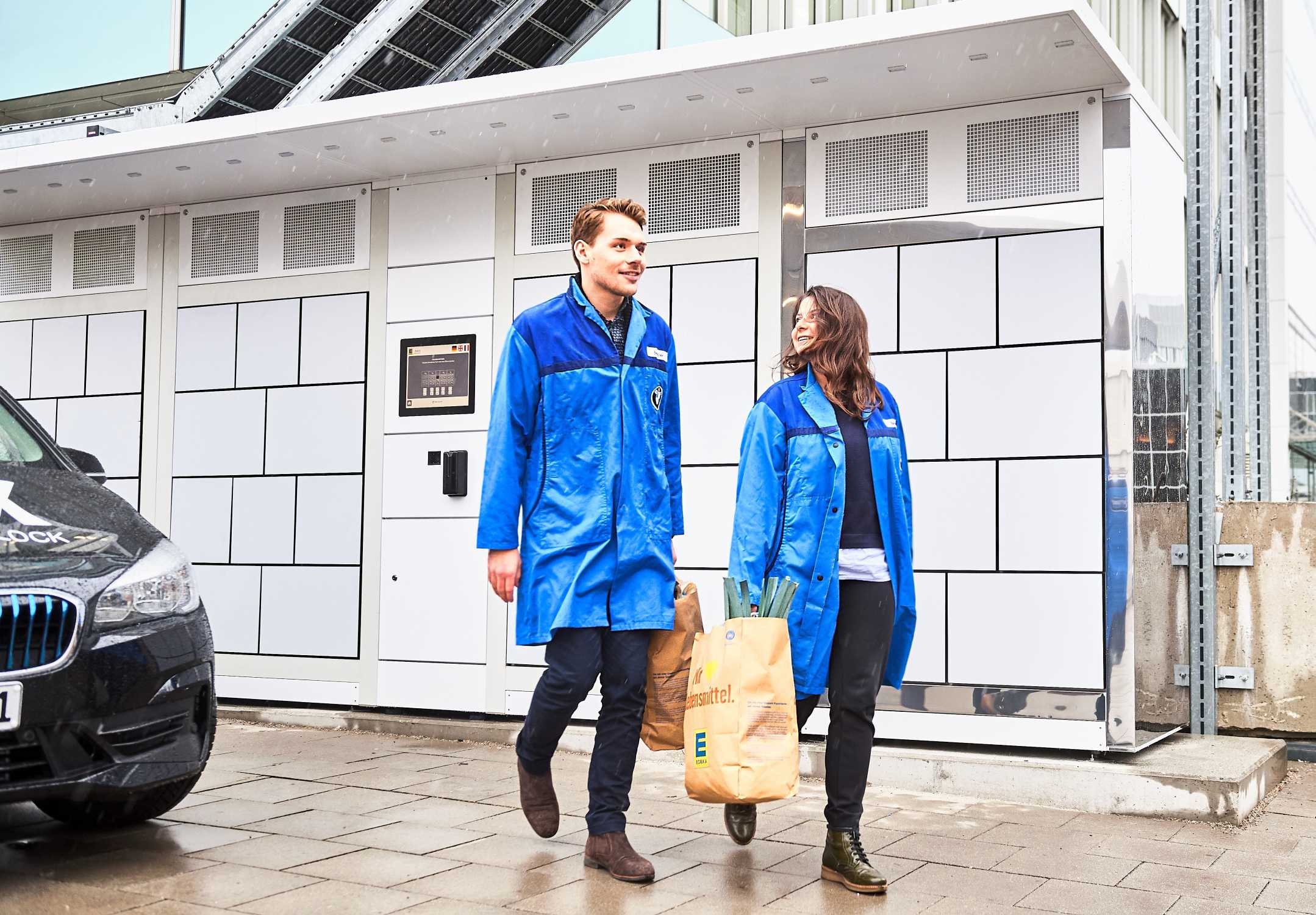 BMW Mitarbeiter vor der Edeka Box.