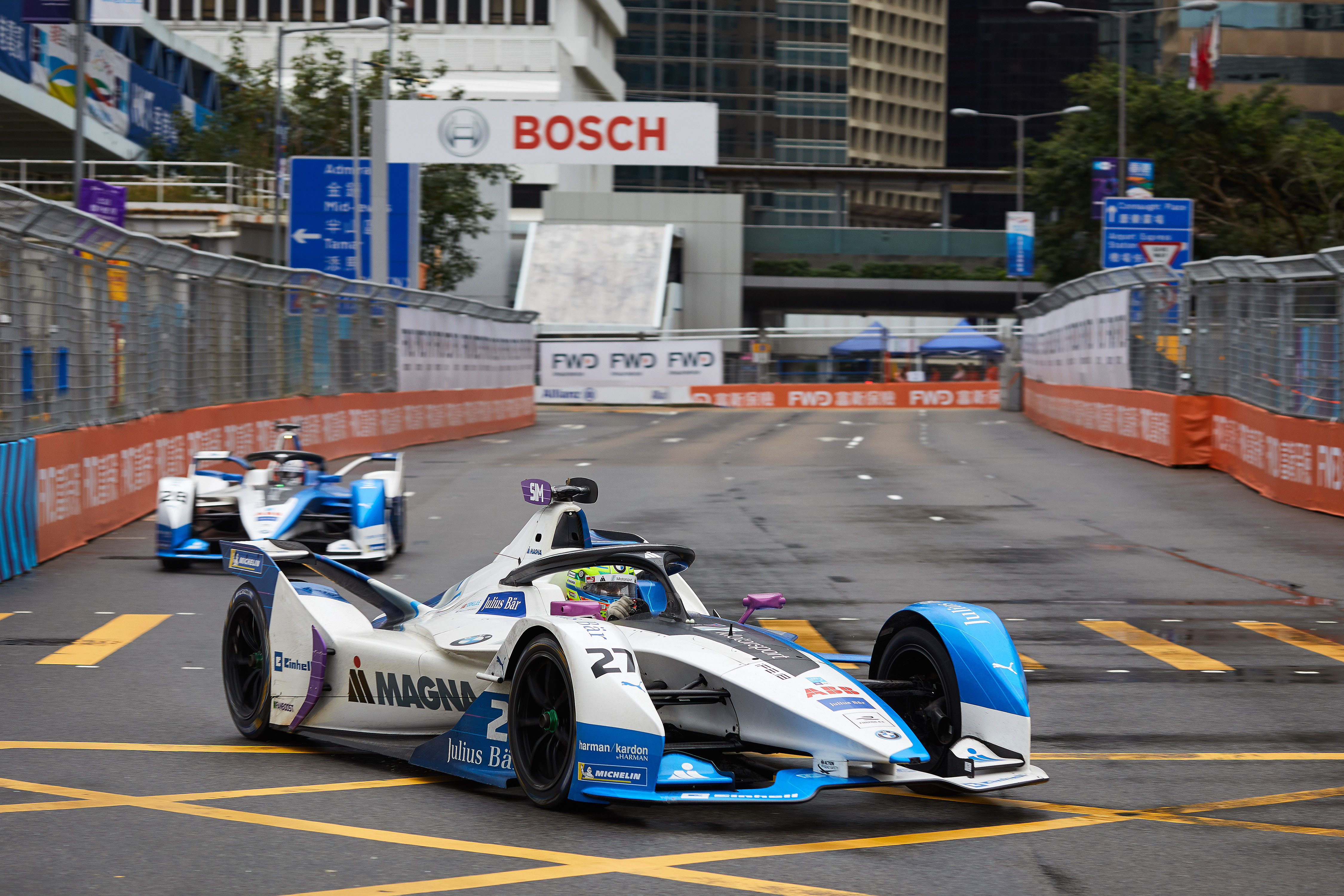 Hong Kong (CHN), 10th March 2019. ABB FIA Formula E Championship, Hong Kong E-Prix, BMW i Andretti Motorsport, Alexander Sims (GBR) BMW iFE.18 #27 and António Félix da Costa (POR) BMW iFE.18 #28.