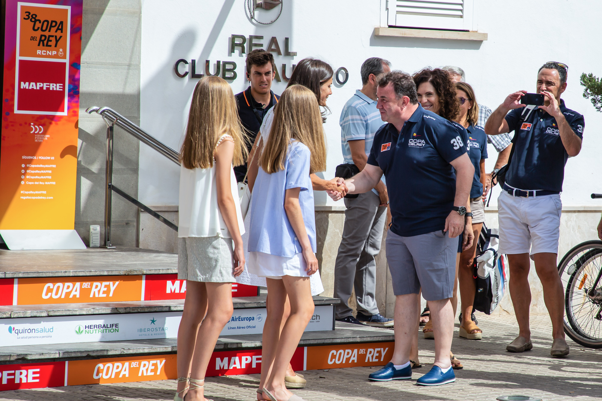 La Princesa de Asturias y la Infanta Sofía saludan al chef Martín Berasategui en la puerta del Real Club Naútico
