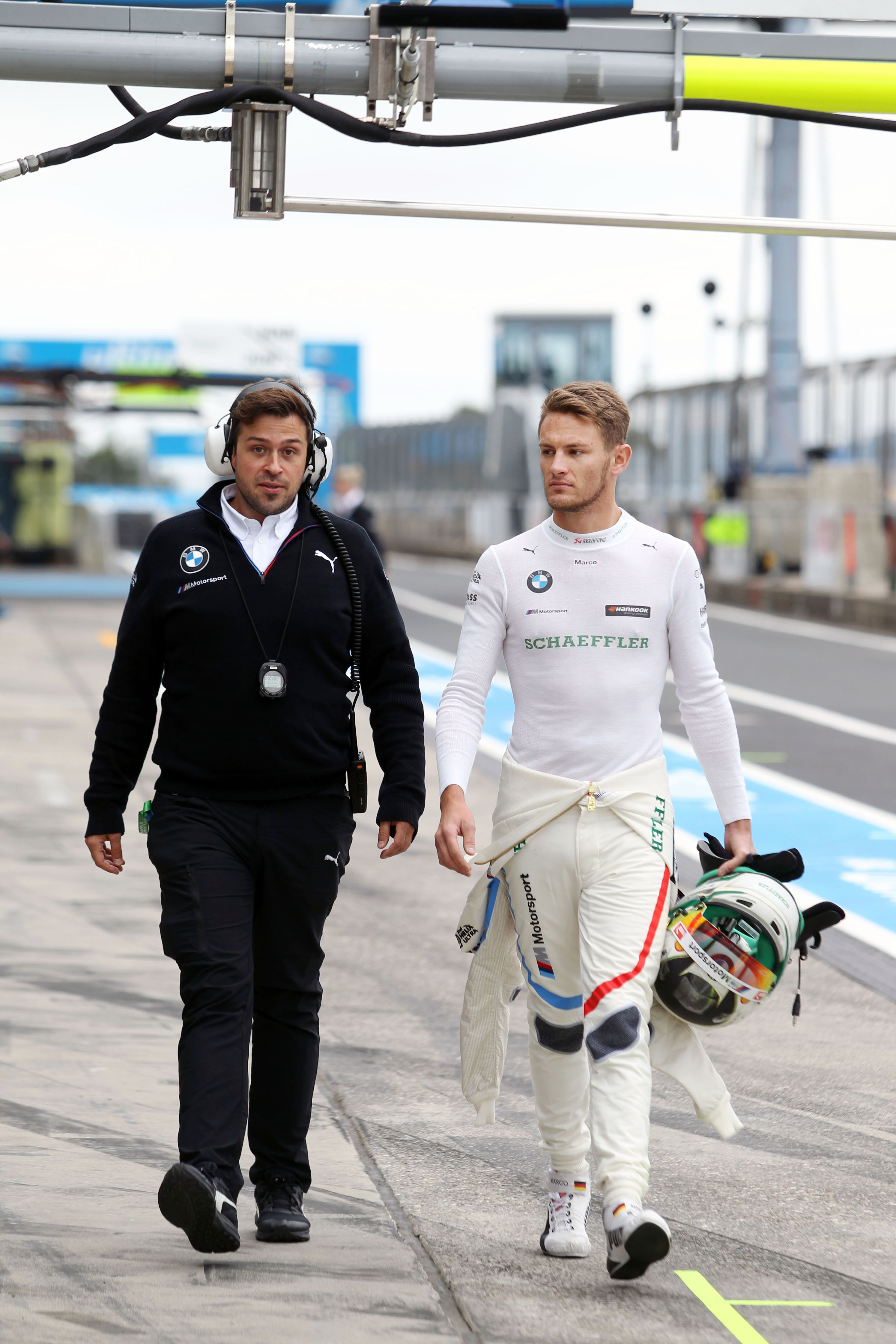 Nürburgring (GER) 13th September 2019. BMW M Motorsport, DTM Rounds 15 & 16, Race engineer Benjamin Schaefer (GER) and Marco Wittmann (GER), #11 Schaeffler BMW M4 DTM, BMW Team RMG.