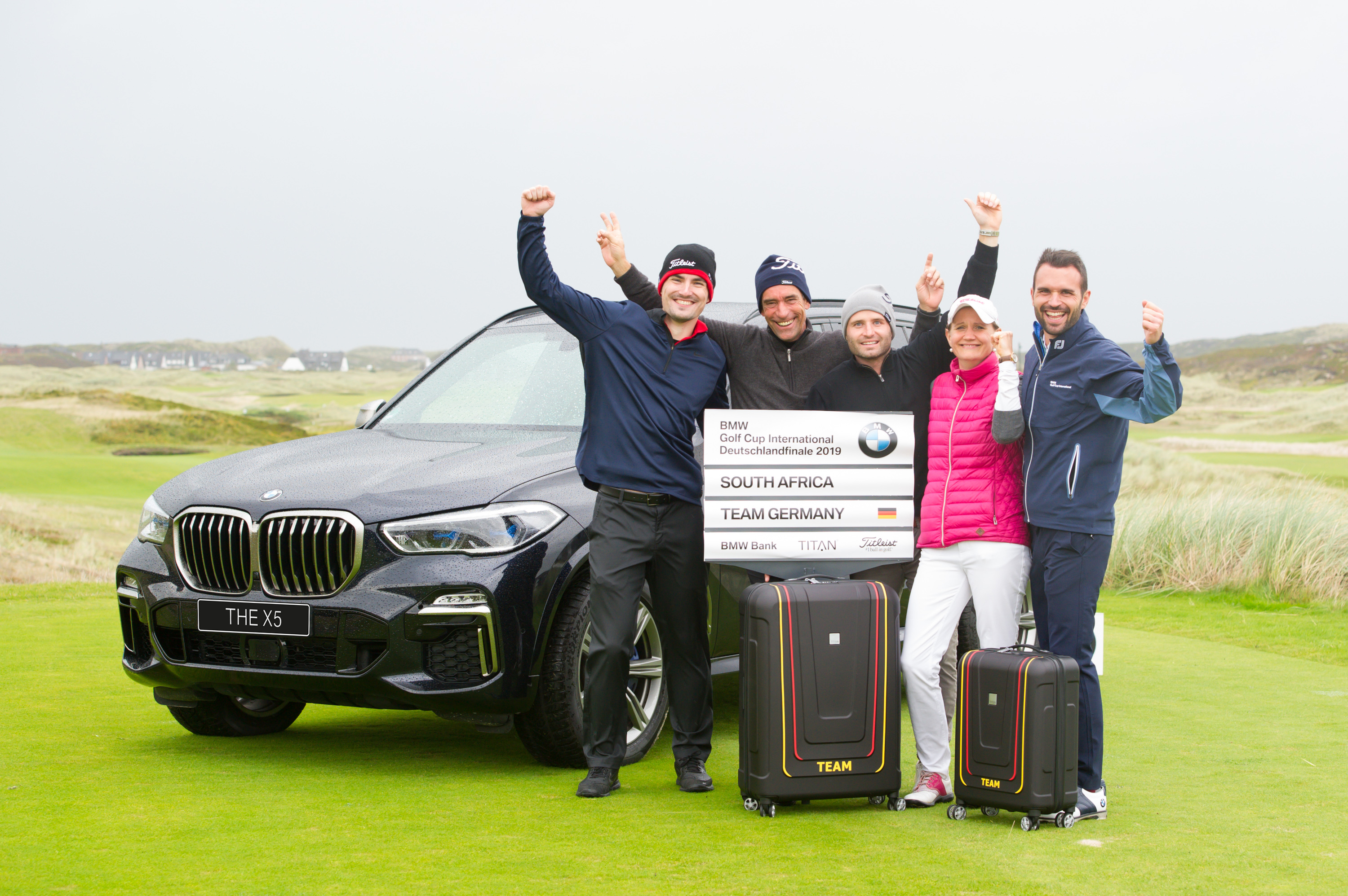 BMW Golf Cup International, Deutschlandfinale 2019, GC Budersand auf Sylt: Florian Bommersbach (Sieger Herren C), Sascha Lotzer (Sieger Herren A), Alexander Feistl (Sieger Herren B), Alexandra Hälig (Siegerin Damen), Florian Thum (Projektleiter Golfsport)