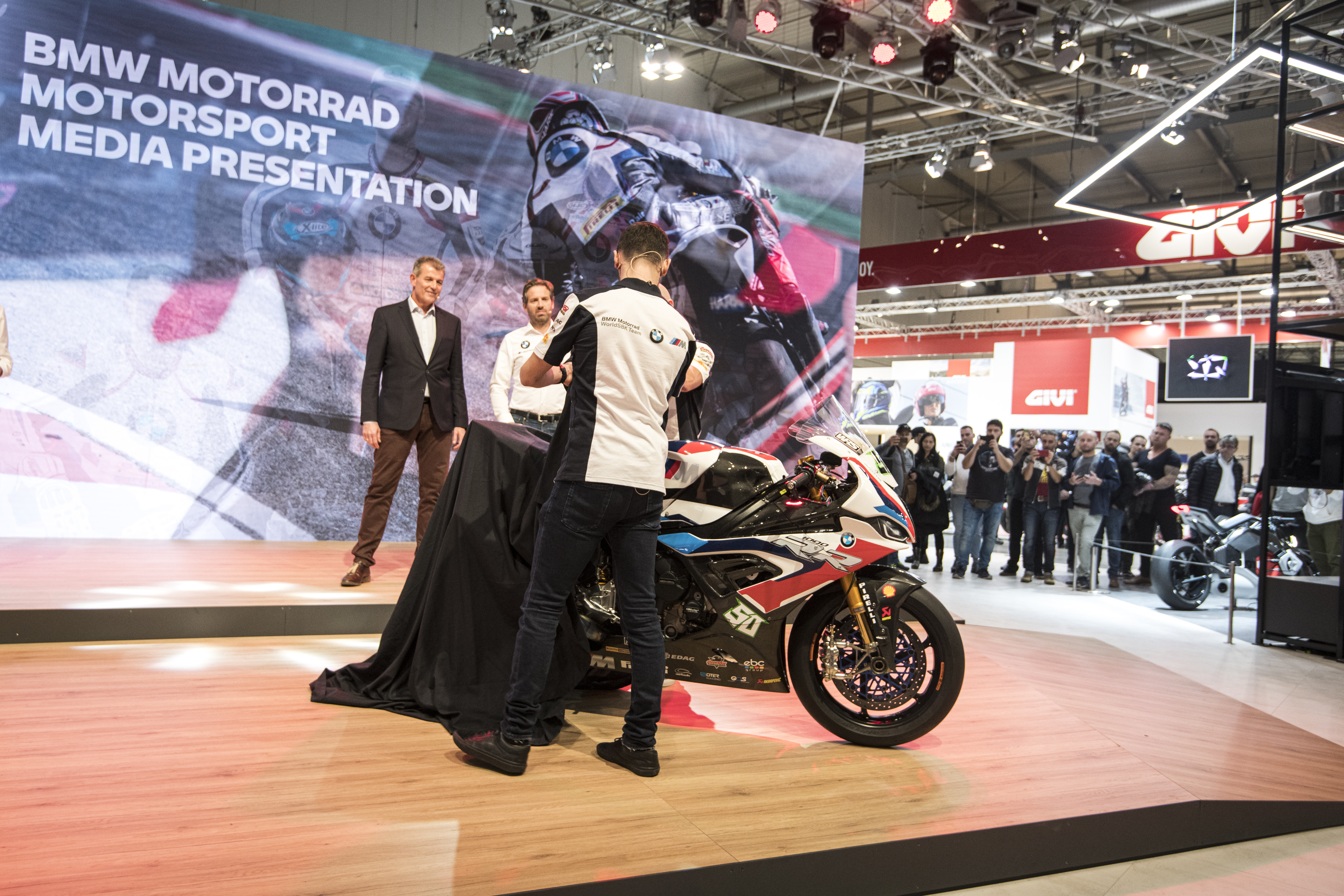 Milan (ITA) 05th November 2019 - EICMA Show - BMW Motorrad WorldSBK Team Presentation - BMW Motorrad Motorsport - Riders: Tom Sykes #66 (GBR) and Eugene Laverty #50 (GBR) - BMW S1000RR.