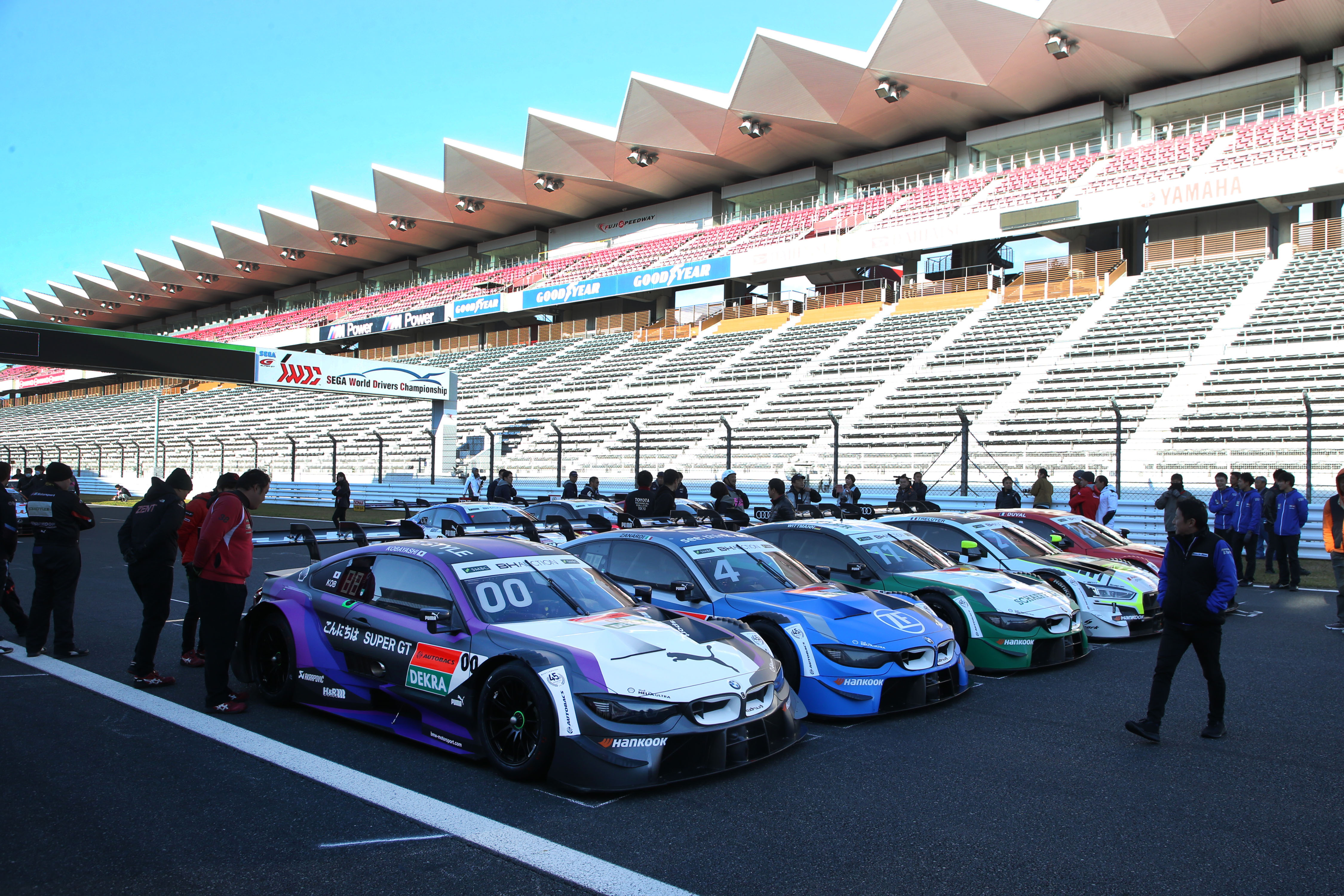 Fuji Speedway (JPN) 20th November 2019. BMW M Motorsport, SUPER GT x DTM Dream Race Car group picture, Kamui Kobayashi (JPN) #00 PUMA BMW M4 DTM, Alessandro Zanardi (ITA) #4 ZF BMW M4 DTM and Marco Wittmann (GER) #11 Schaeffler BMW M4 DTM.