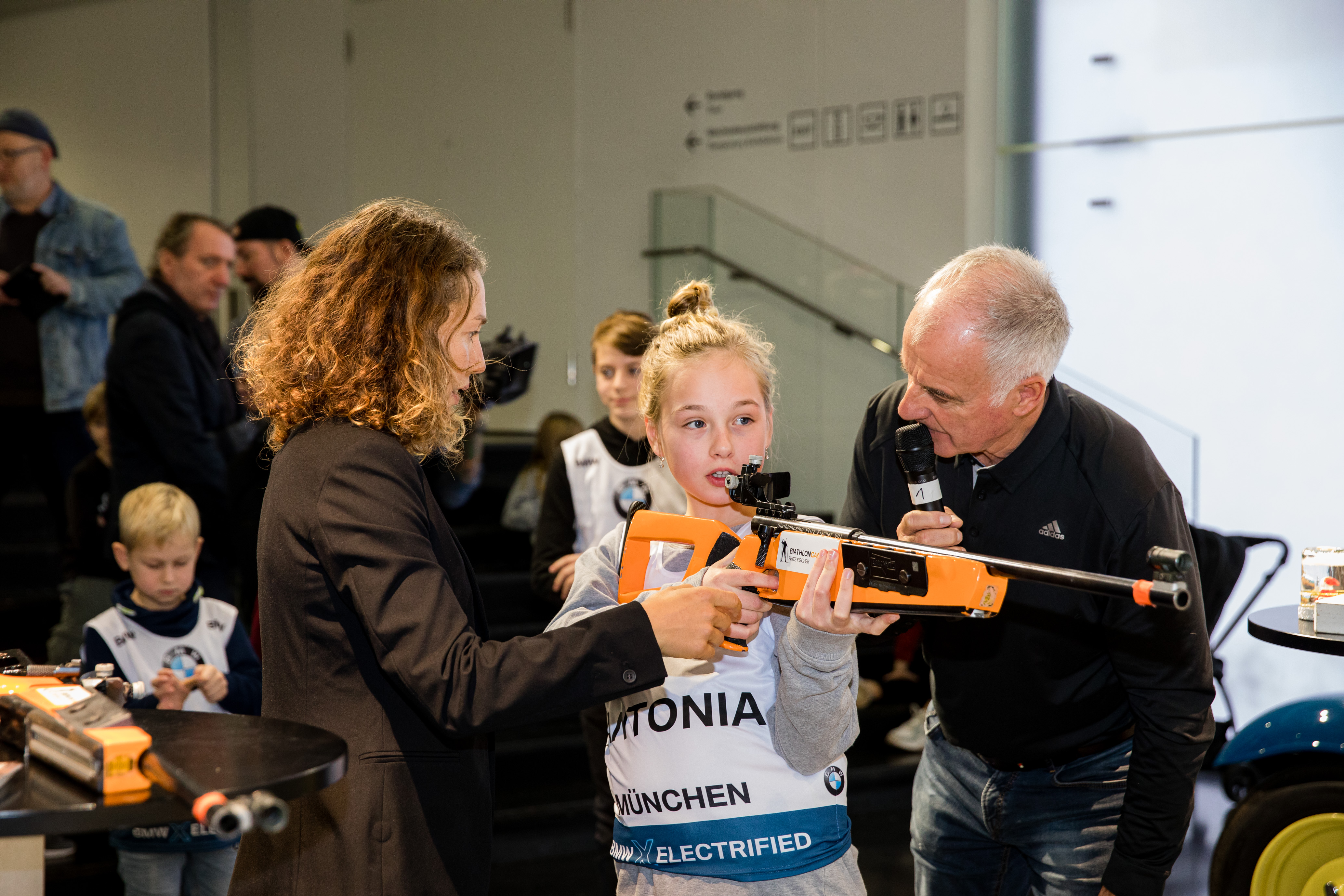 München (GER), 24. November 2019. Biathlon-Familiensonntag, Laura Dahlmeier, Fritz Fischer, BMW Welt.
