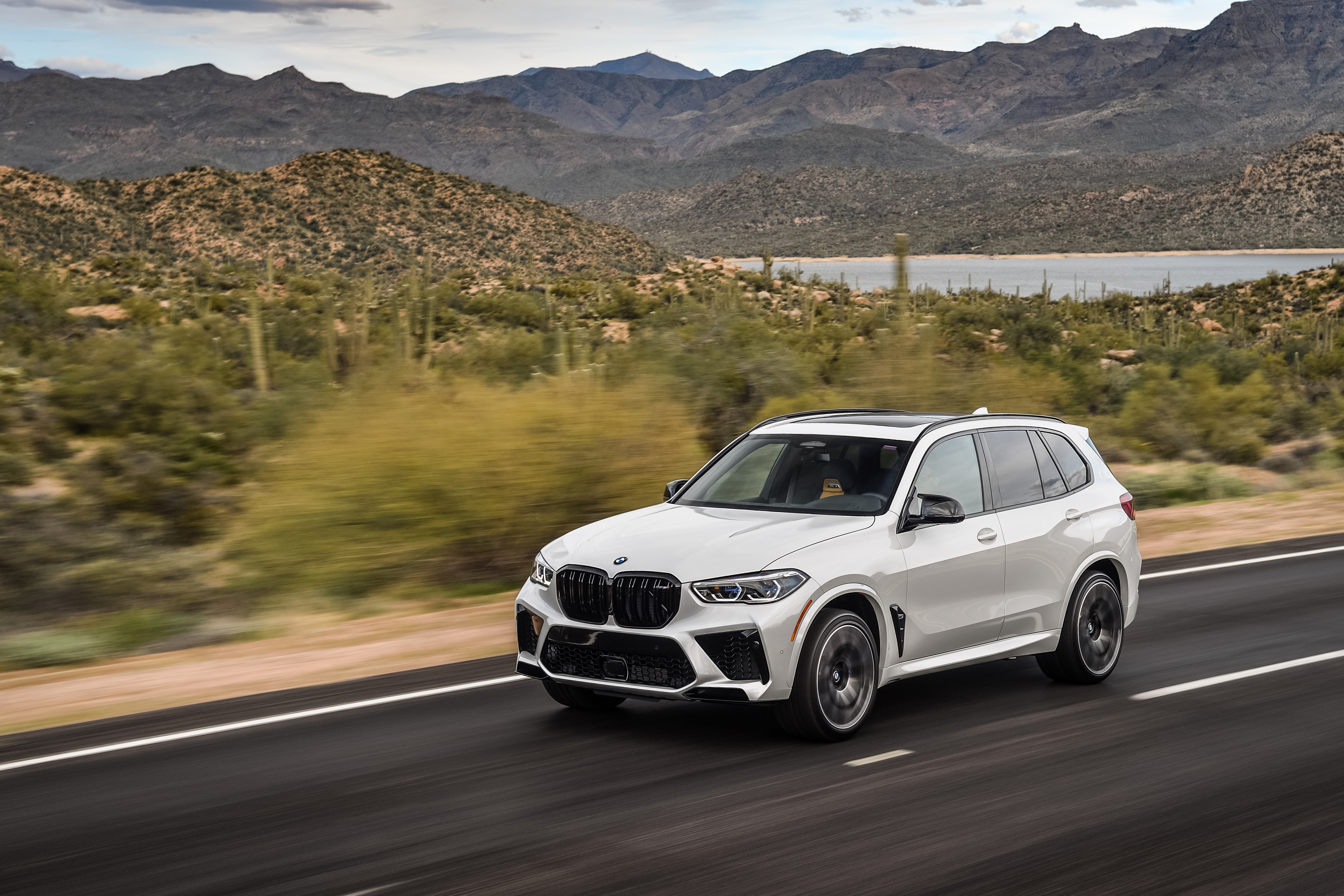 Der neue BMW X5 M Competition in Außenfarbe Mineralweiß metallic und 21“/22” M Leichtmetallräder Sternspeiche 809 M Bicolor / MB – Phoenix, Arizona (02/2020).