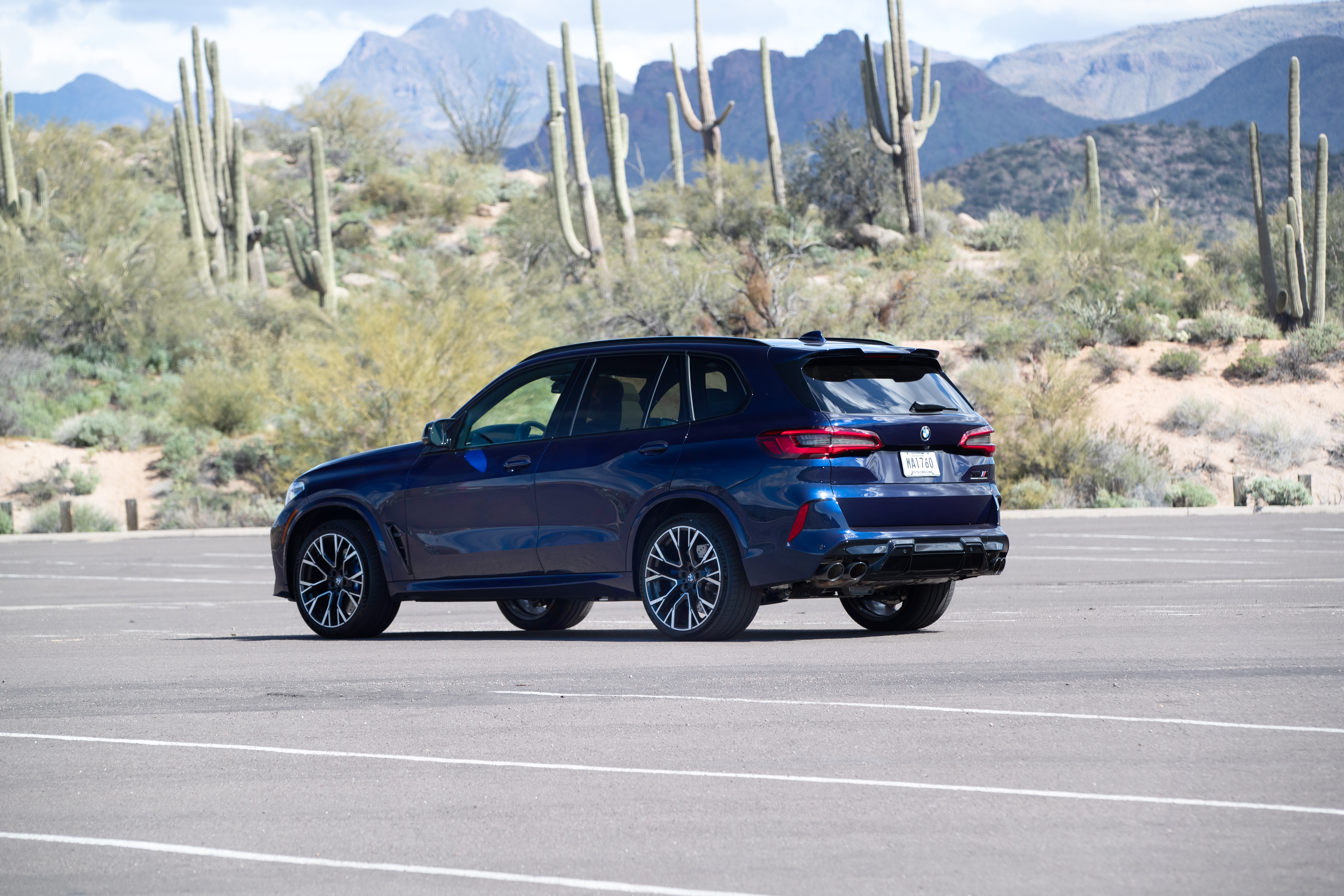 Der neue BMW X5 M Competition in Außenfarbe Tansanitblau metallic und 21“/22” M Leichtmetallräder Sternspeiche 809 M Bicolor / MB – Phoenix, Arizona (02/2020).
