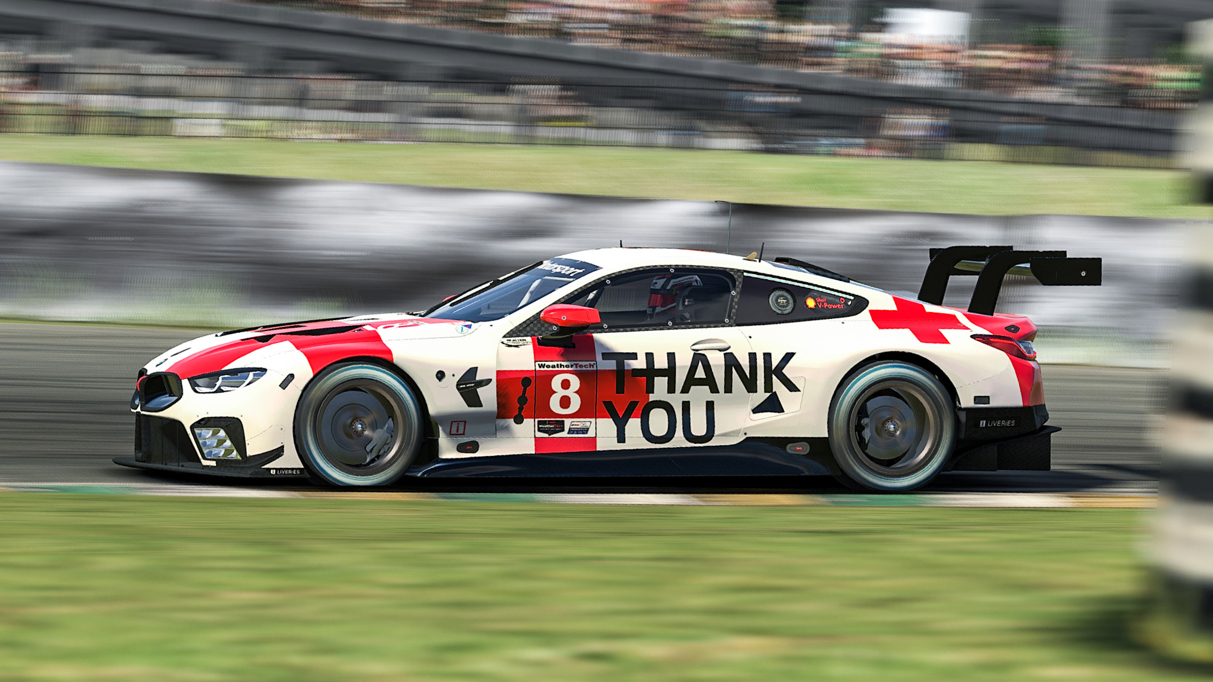 BMW Motorsport SIM Racing. "Race Like A Hero" special livery, virtual BMW M8 GTE, iRacing, sim racing, simulation, simulator